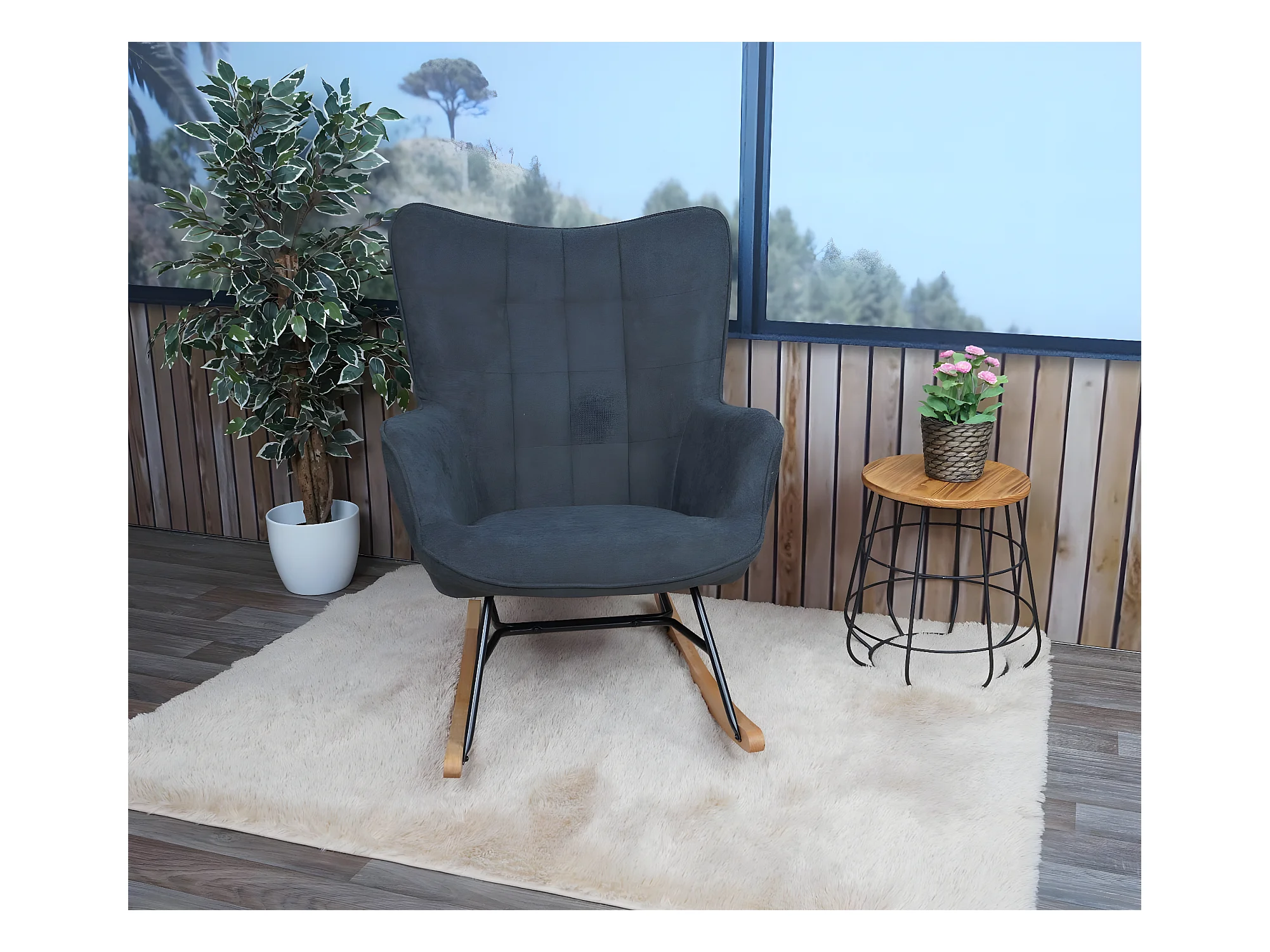 Schommelstoel, relaxstoel, met zakken en houten poten, donkergrijs teddyfluweel