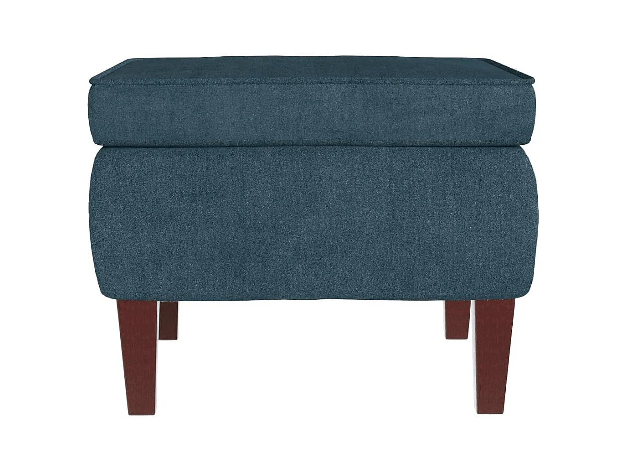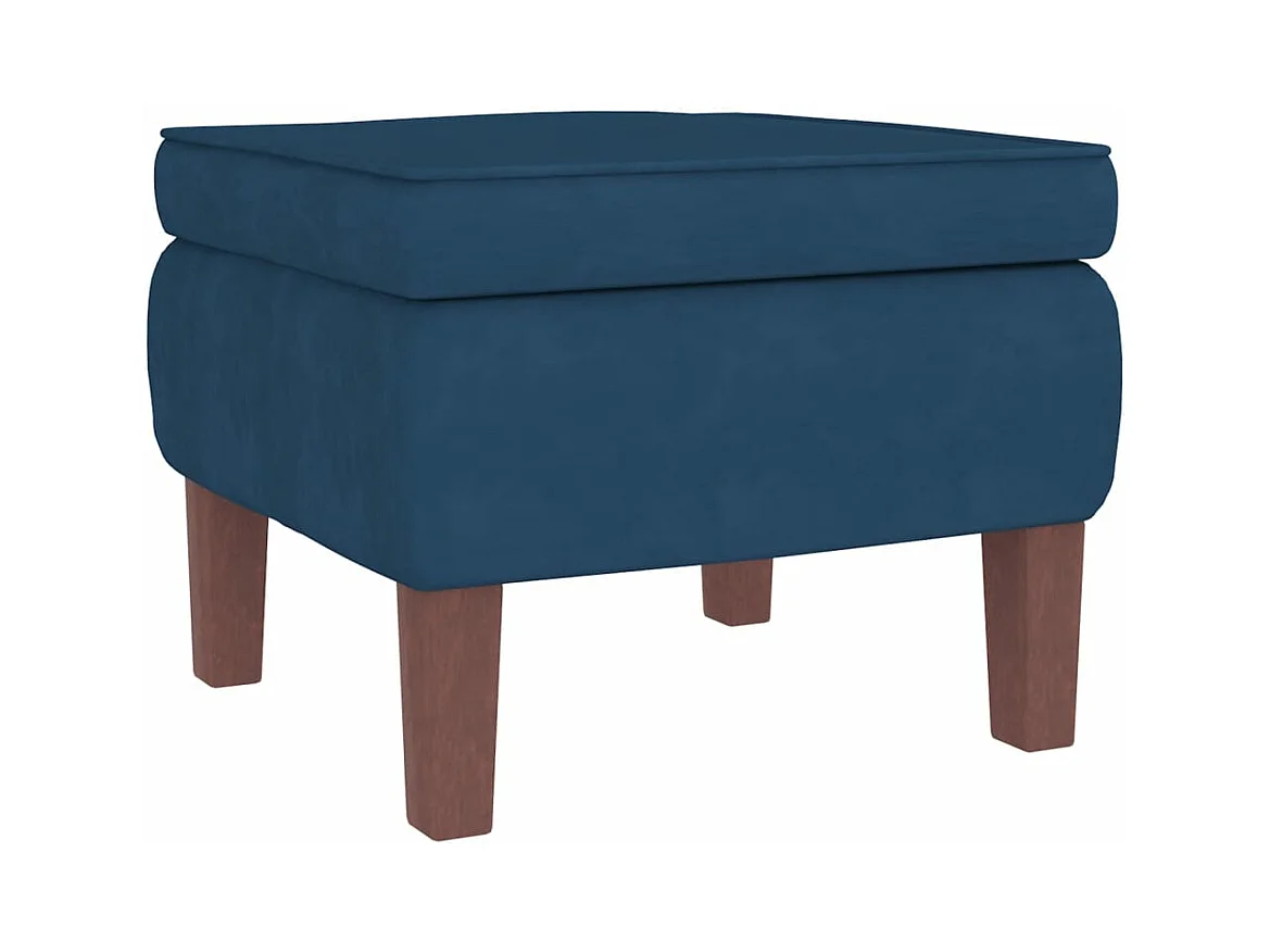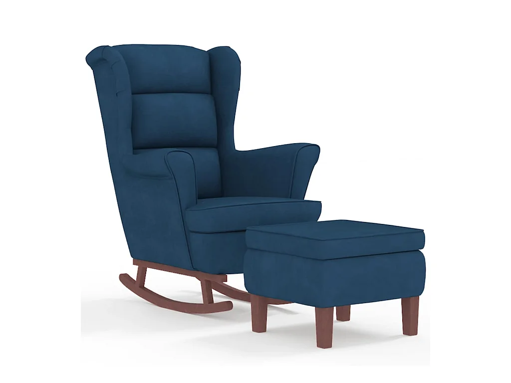 Schommelstoel met houten poten en krukje Blauw Fluweel