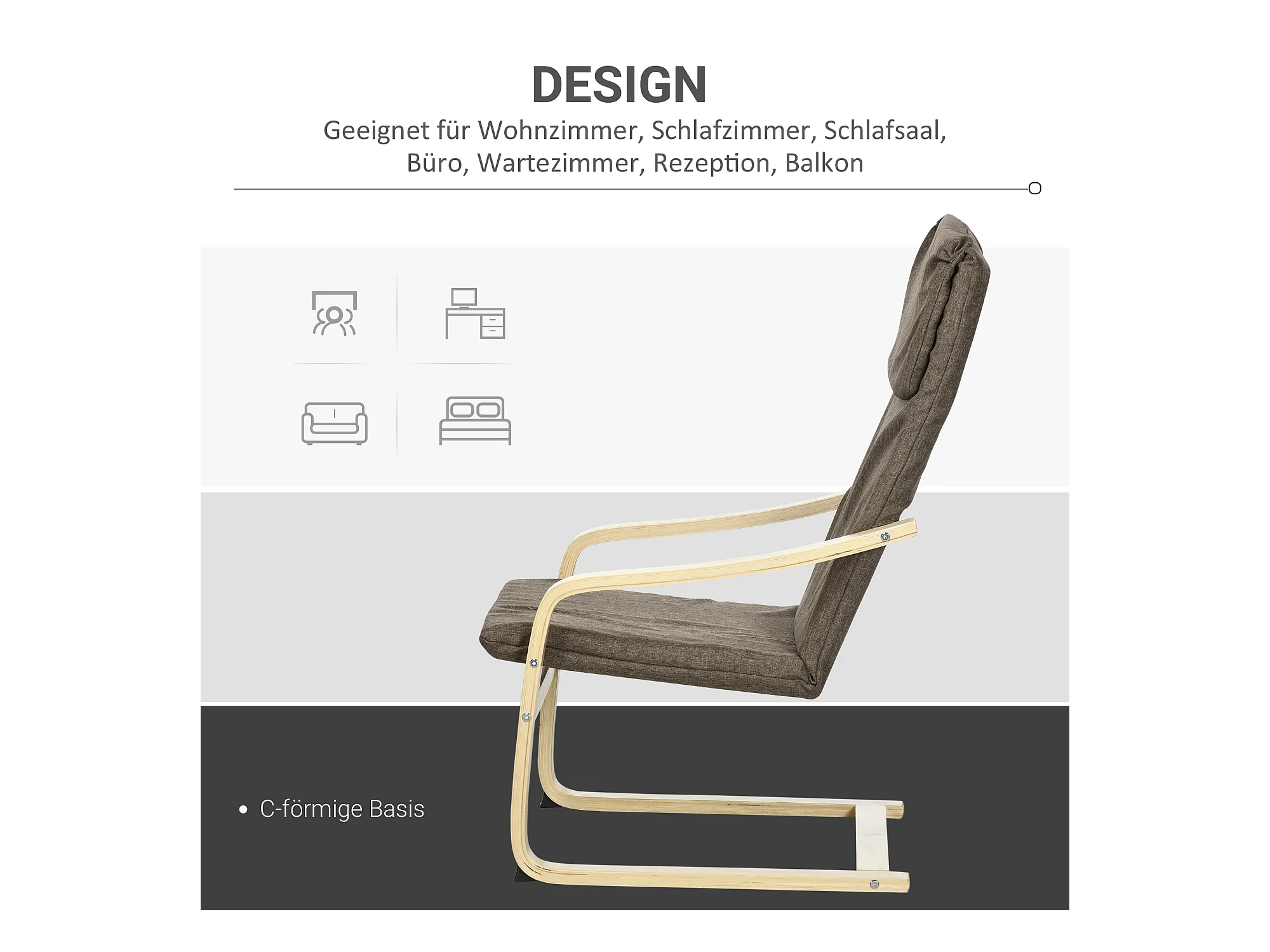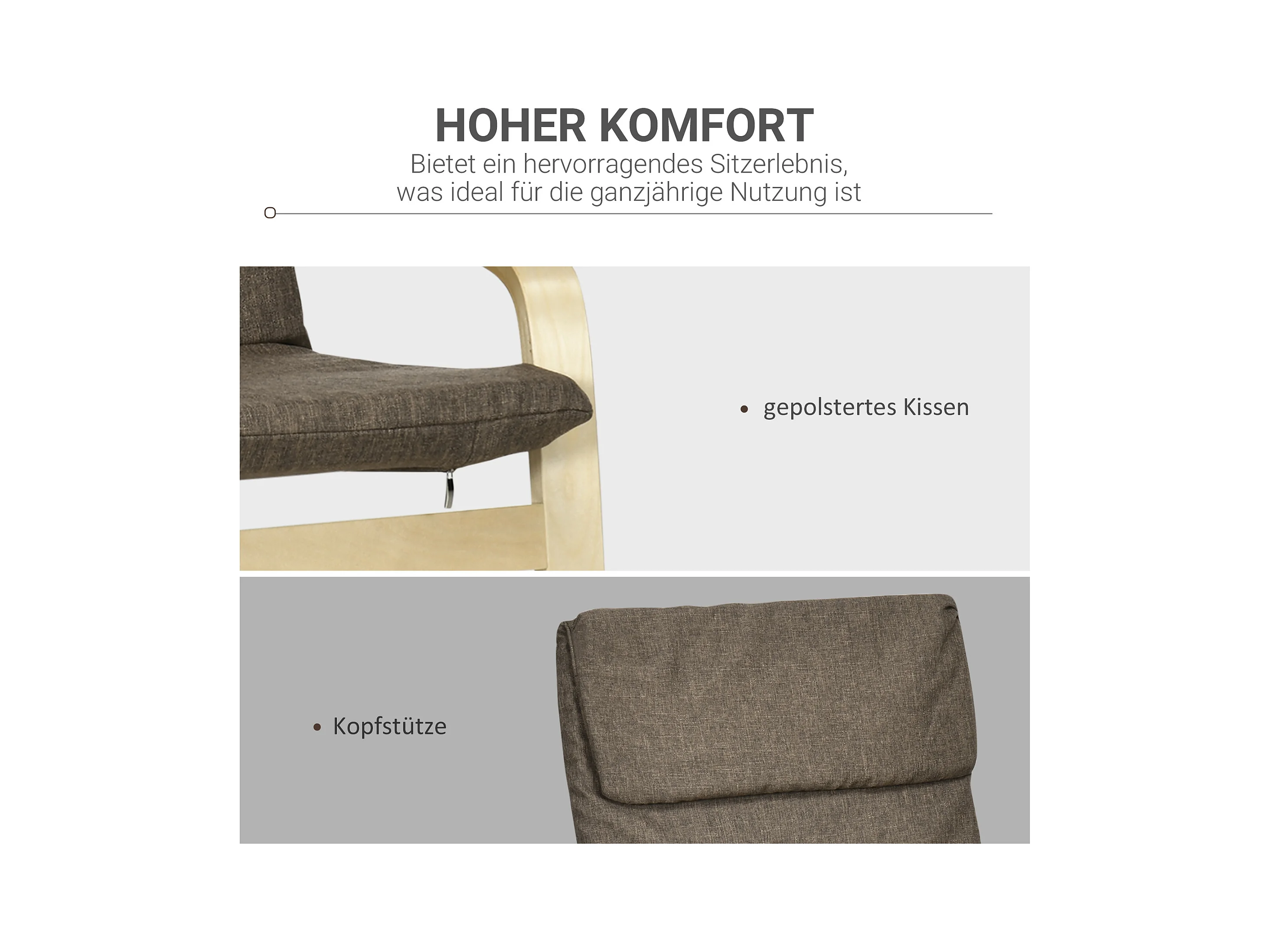Schommelstoel met kussen, linnen stof, berkenhout, bruin (65x69x98 cm)