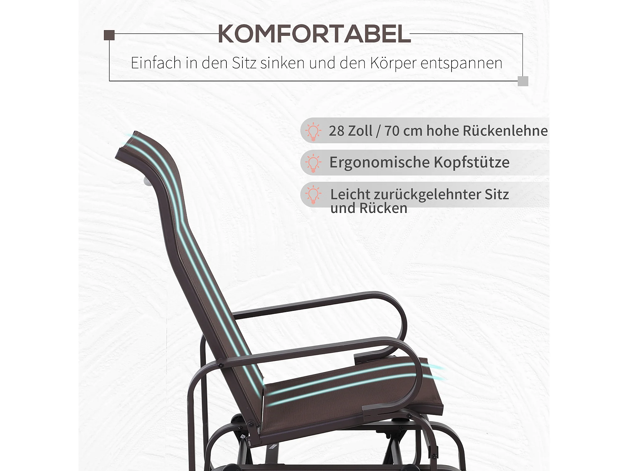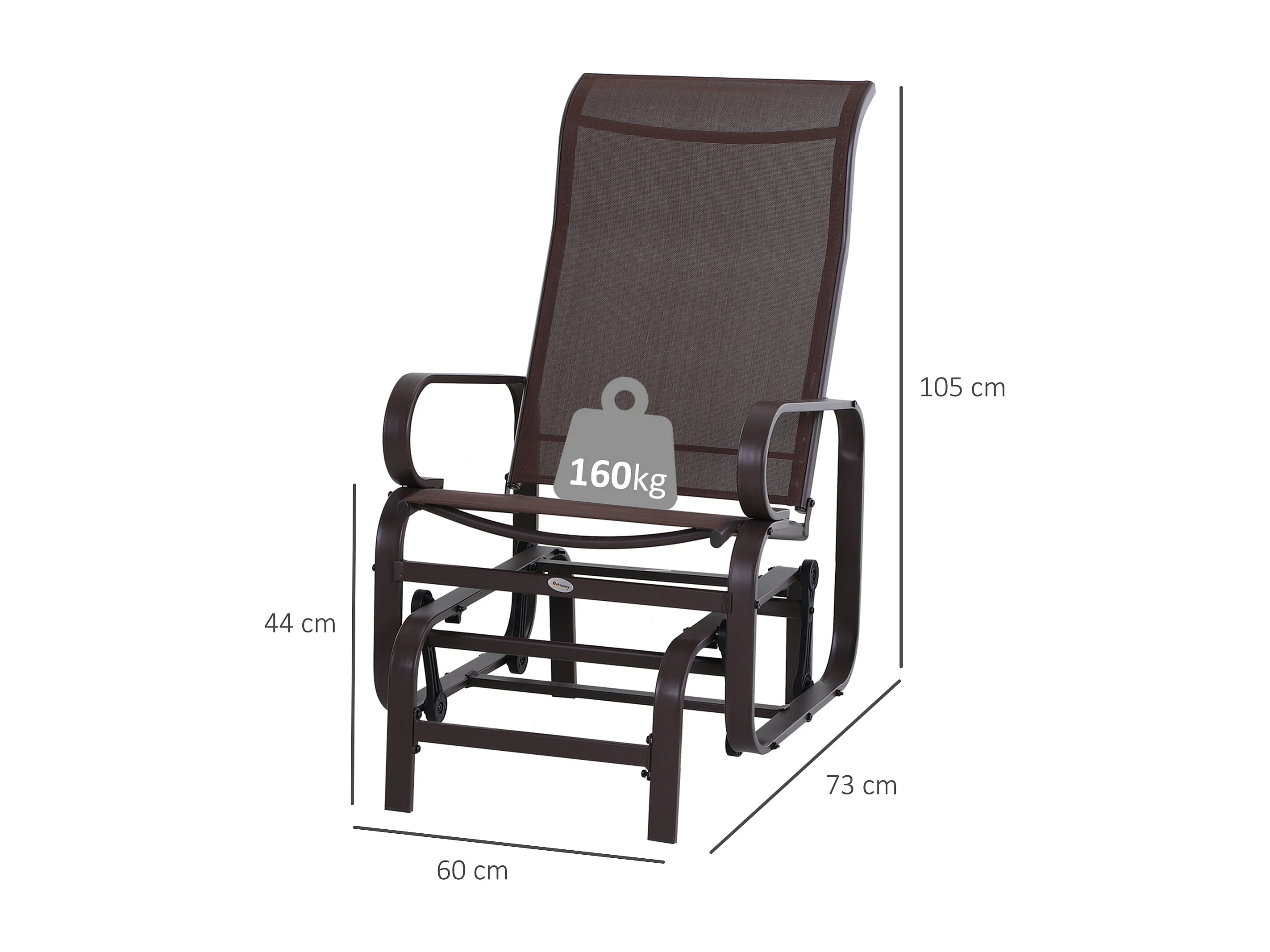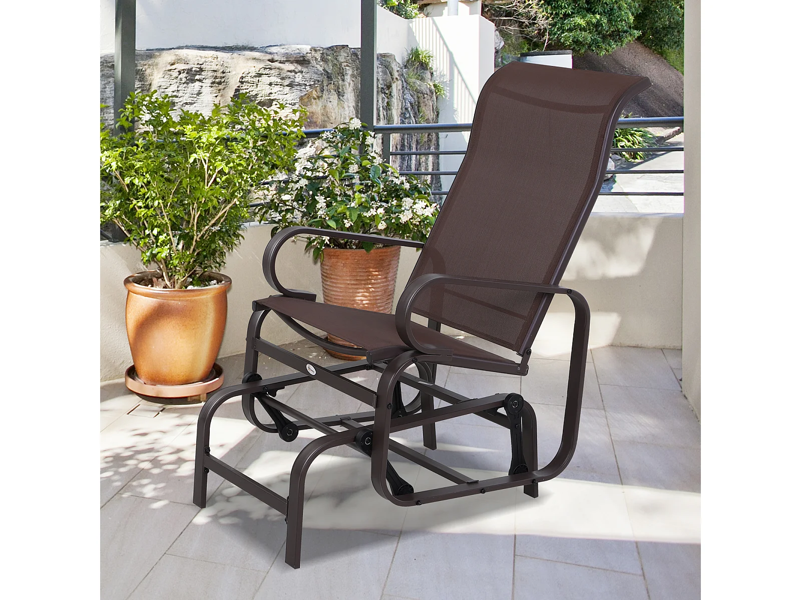 Schommelstoel met kussen, metaal, textiel, bruin (60x75x104 cm)