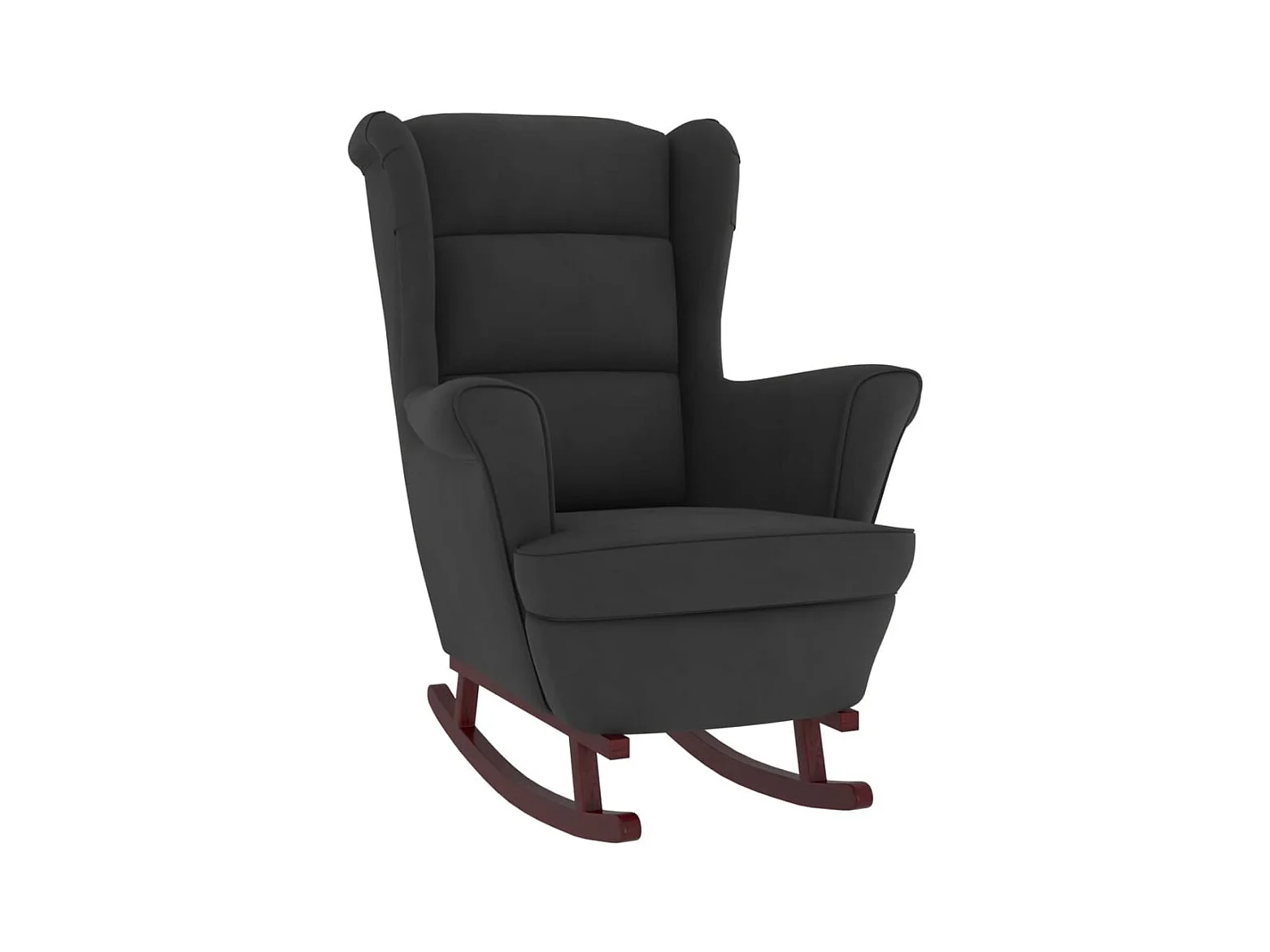Schommelstoel met massief rubberhouten poten in zwart fluweel
