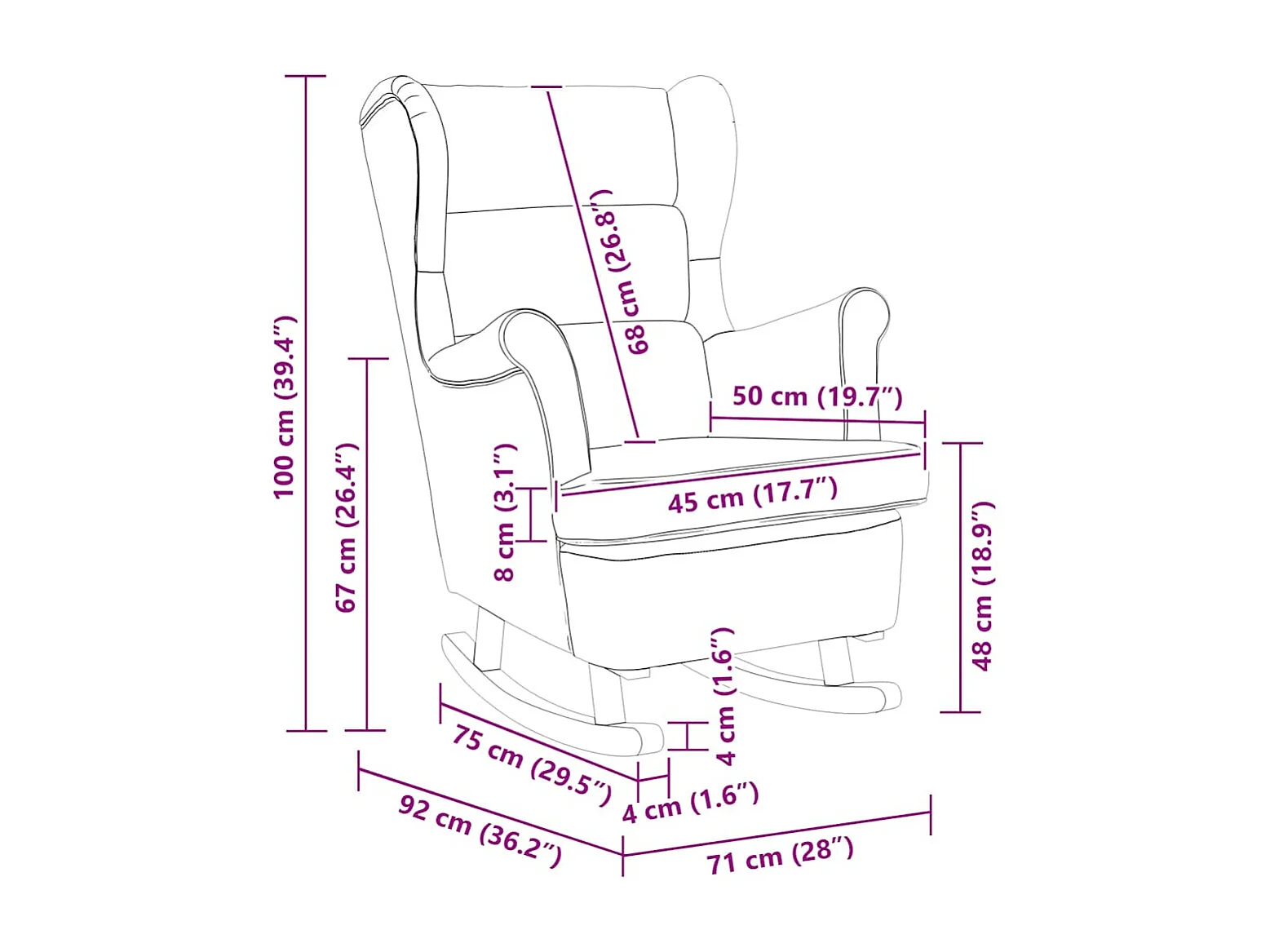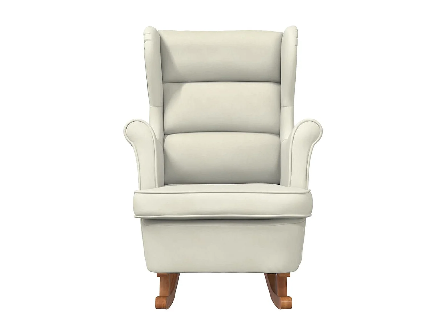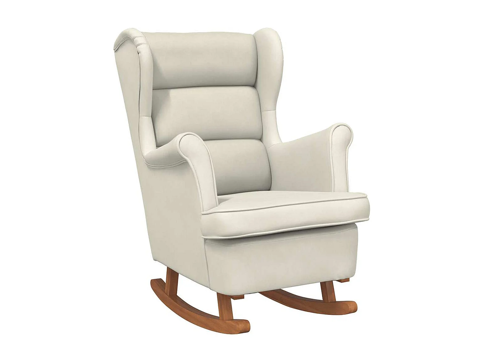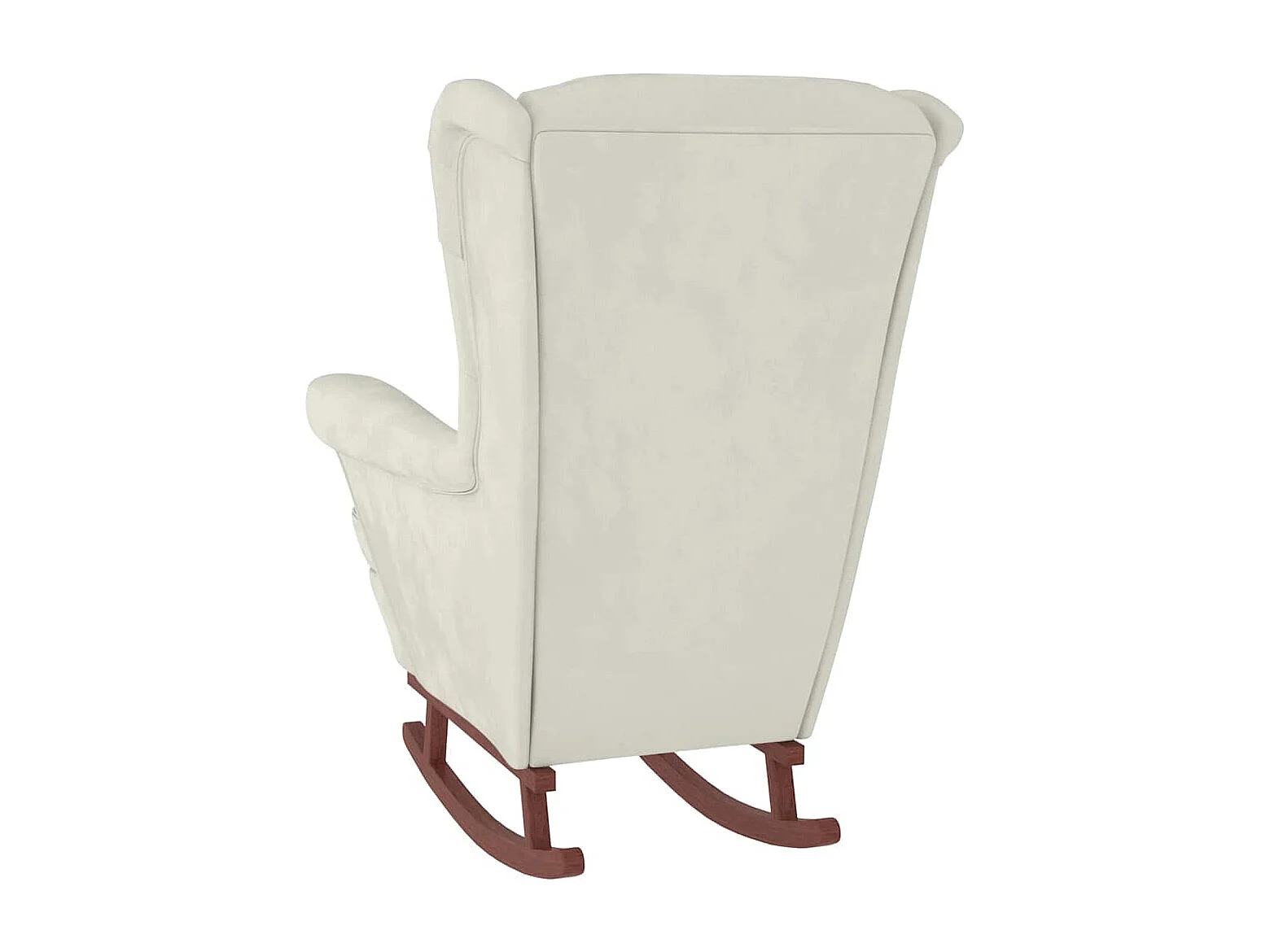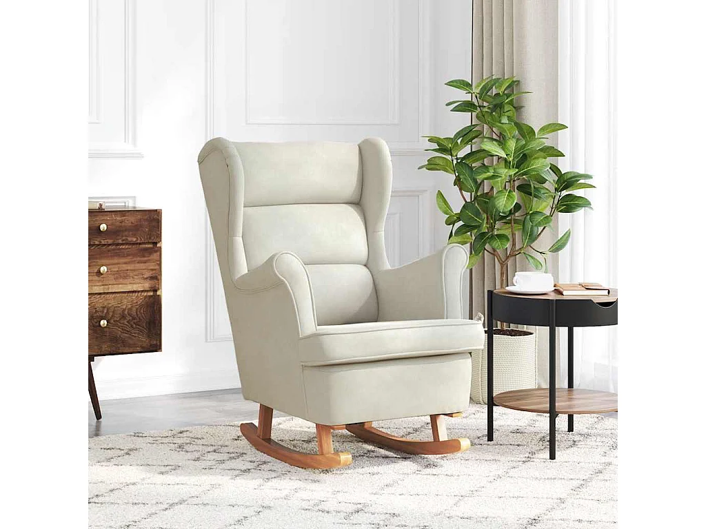 Schommelstoel met oorleuning crèmekleurig fluweel massief hout
