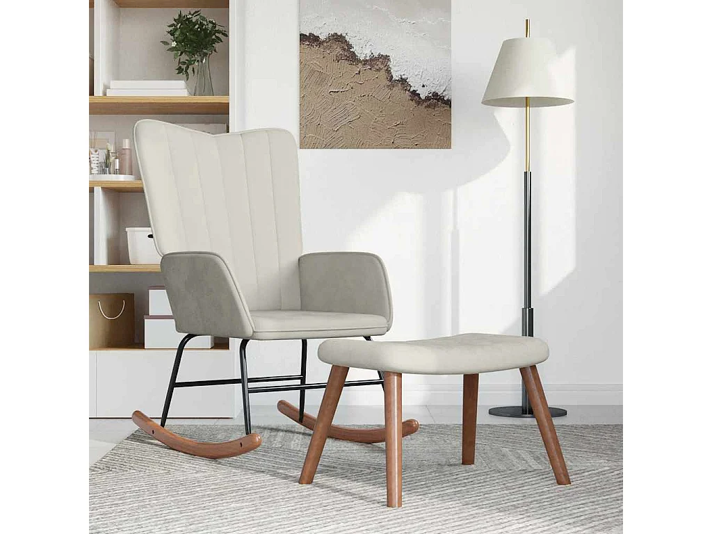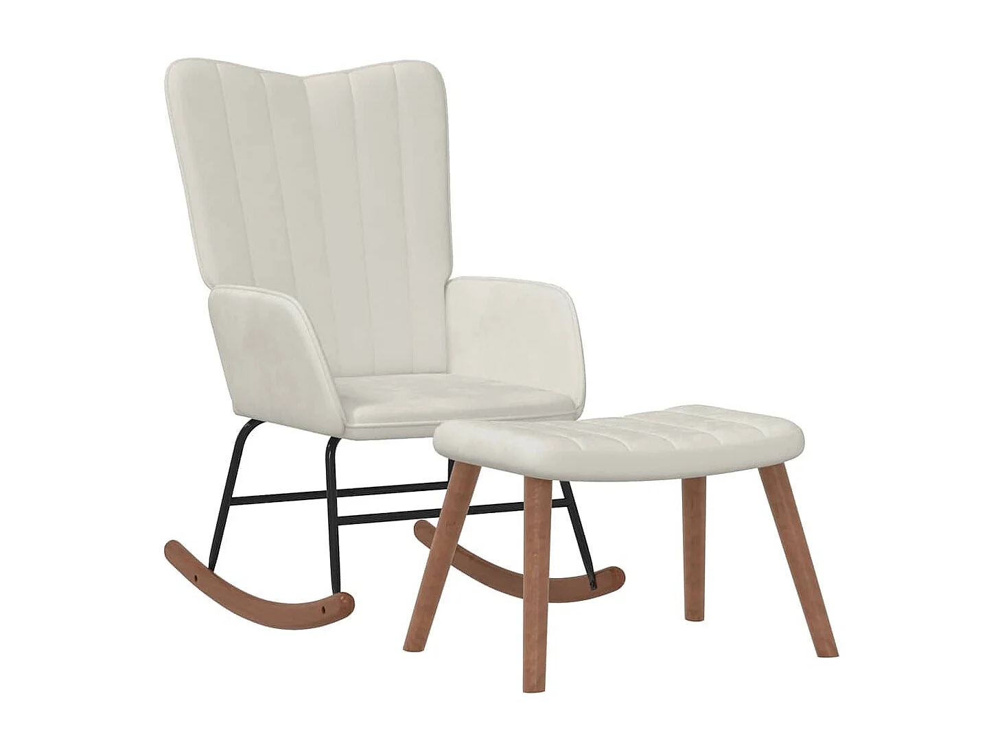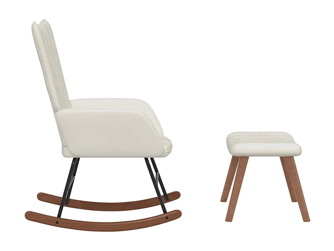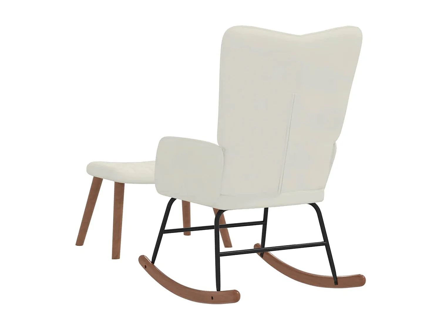 Schommelstoel met voetenbankje - 73 x 92 x 102 cm - Armleuningen en hoofdsteun - Teddy fluwelen stof - Wit