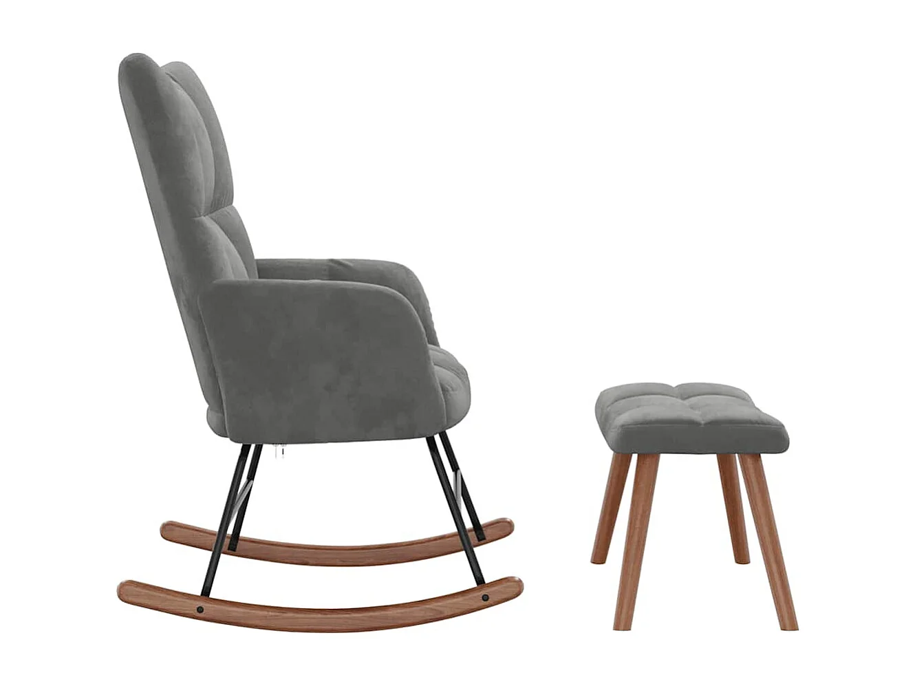 Schommelstoel met oorleuning lichtgrijs fluweel massief hout