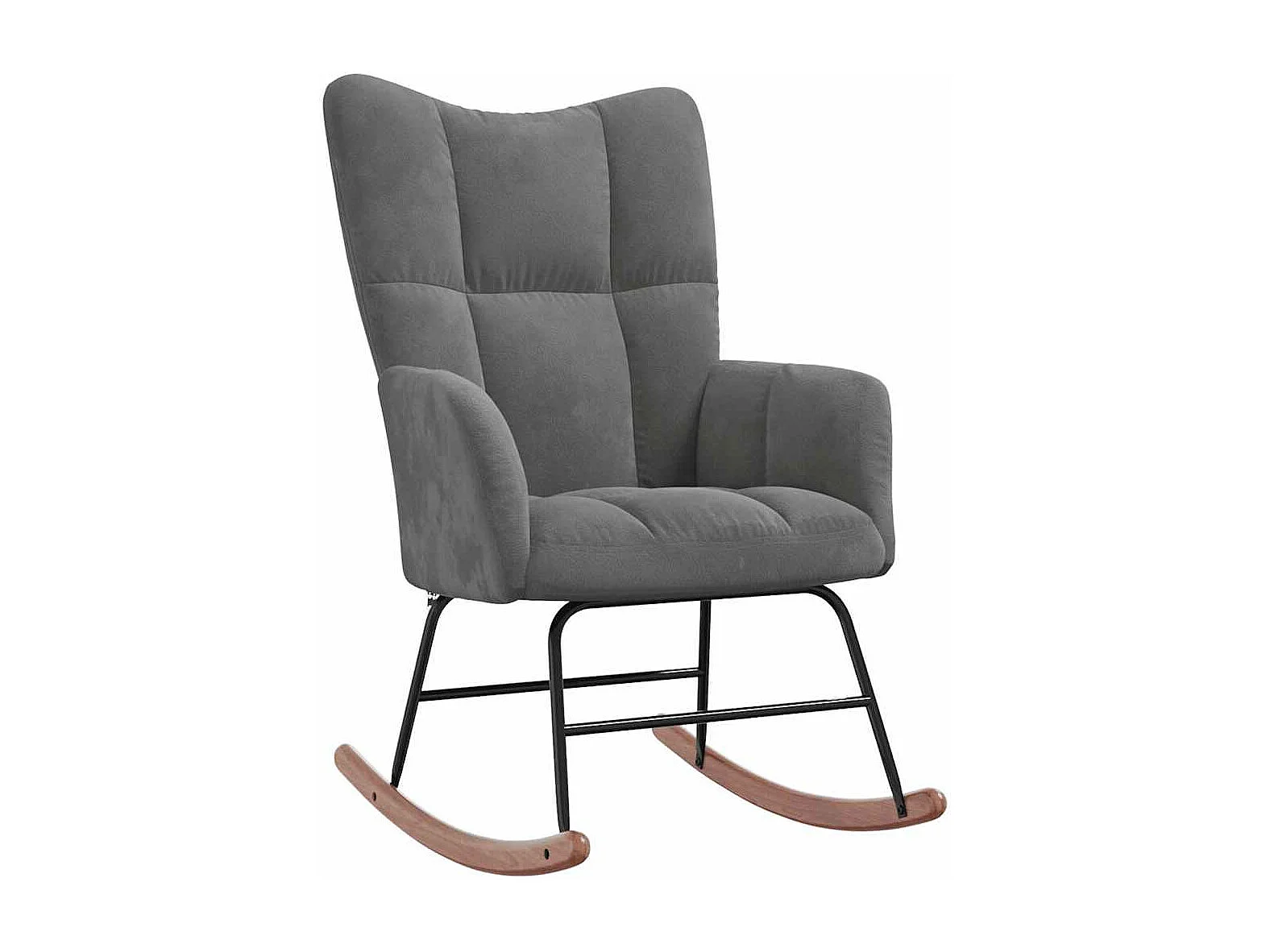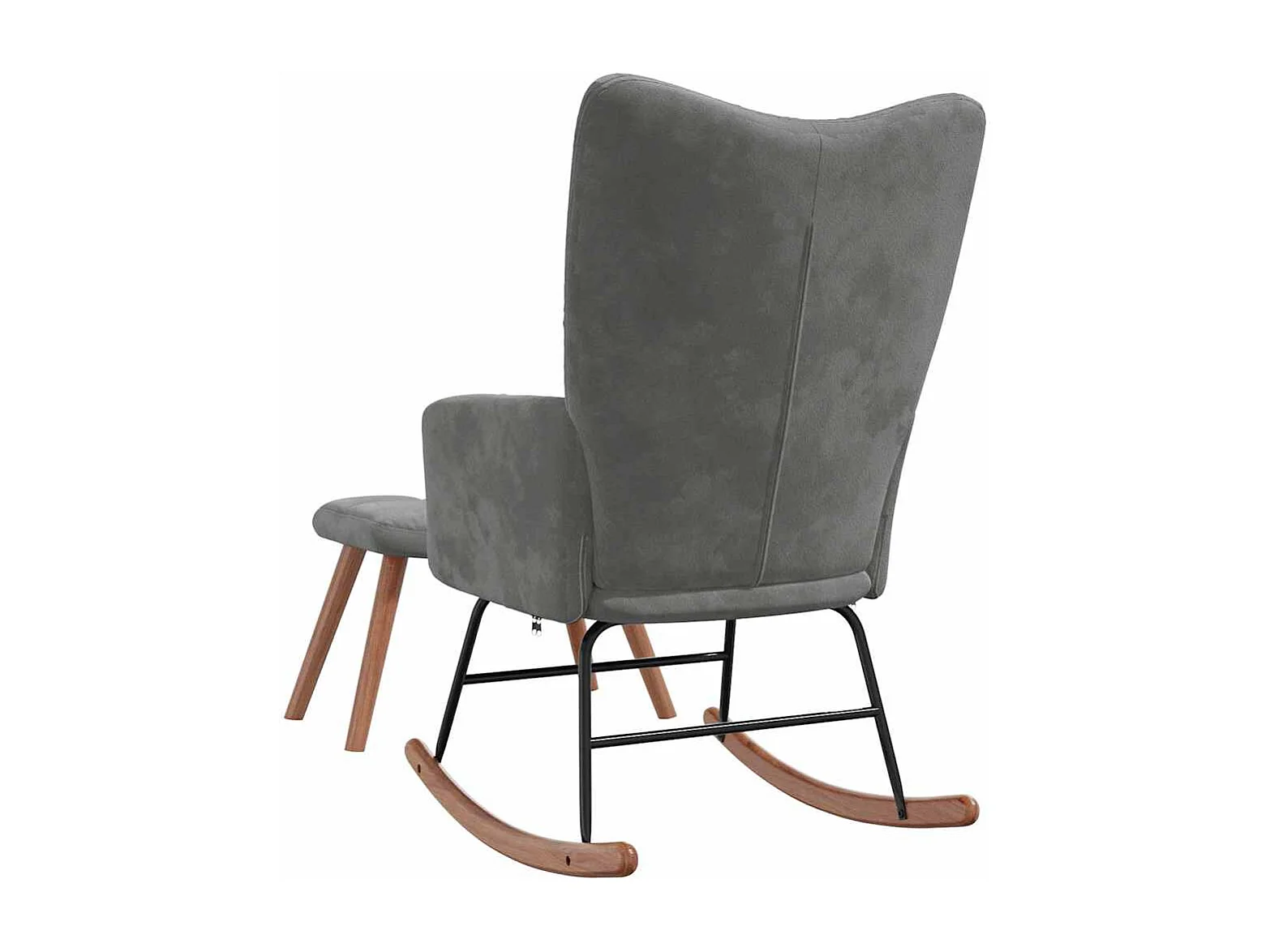 Schommelstoel met oorleuning donkergrijs fluweel massief hout