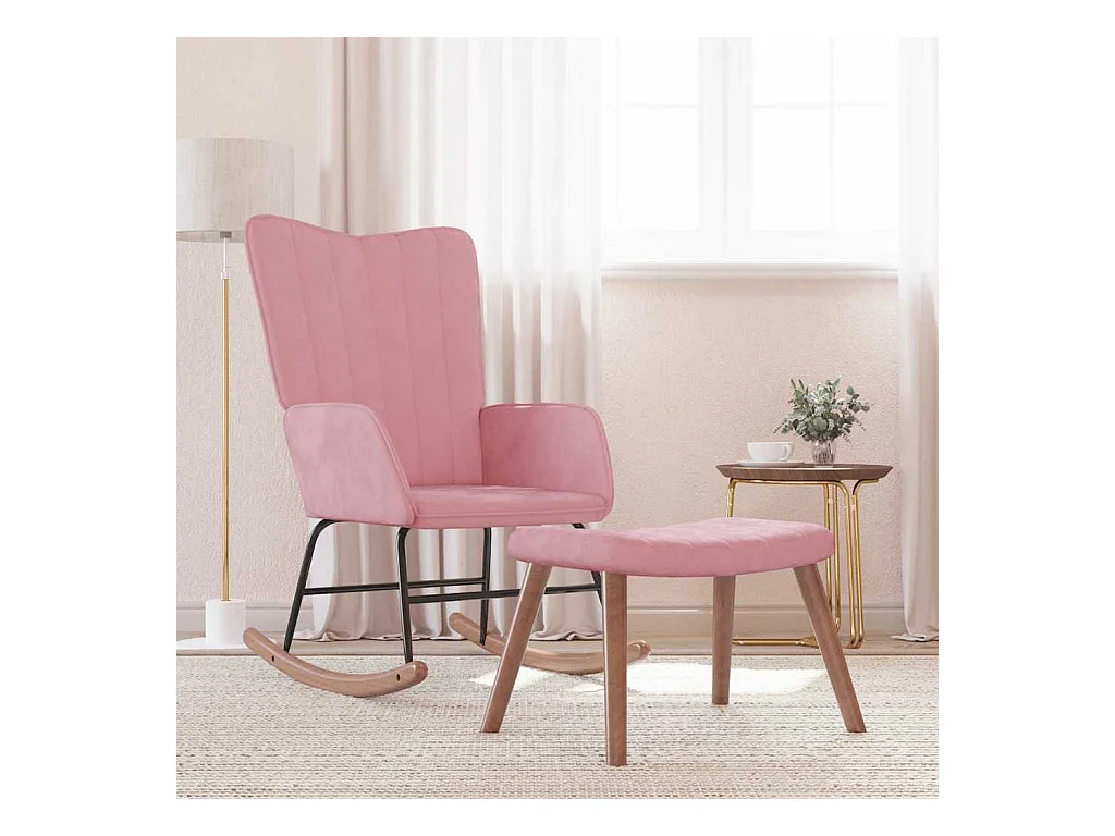 Schommelstoel met roze fluwelen voetenbankje