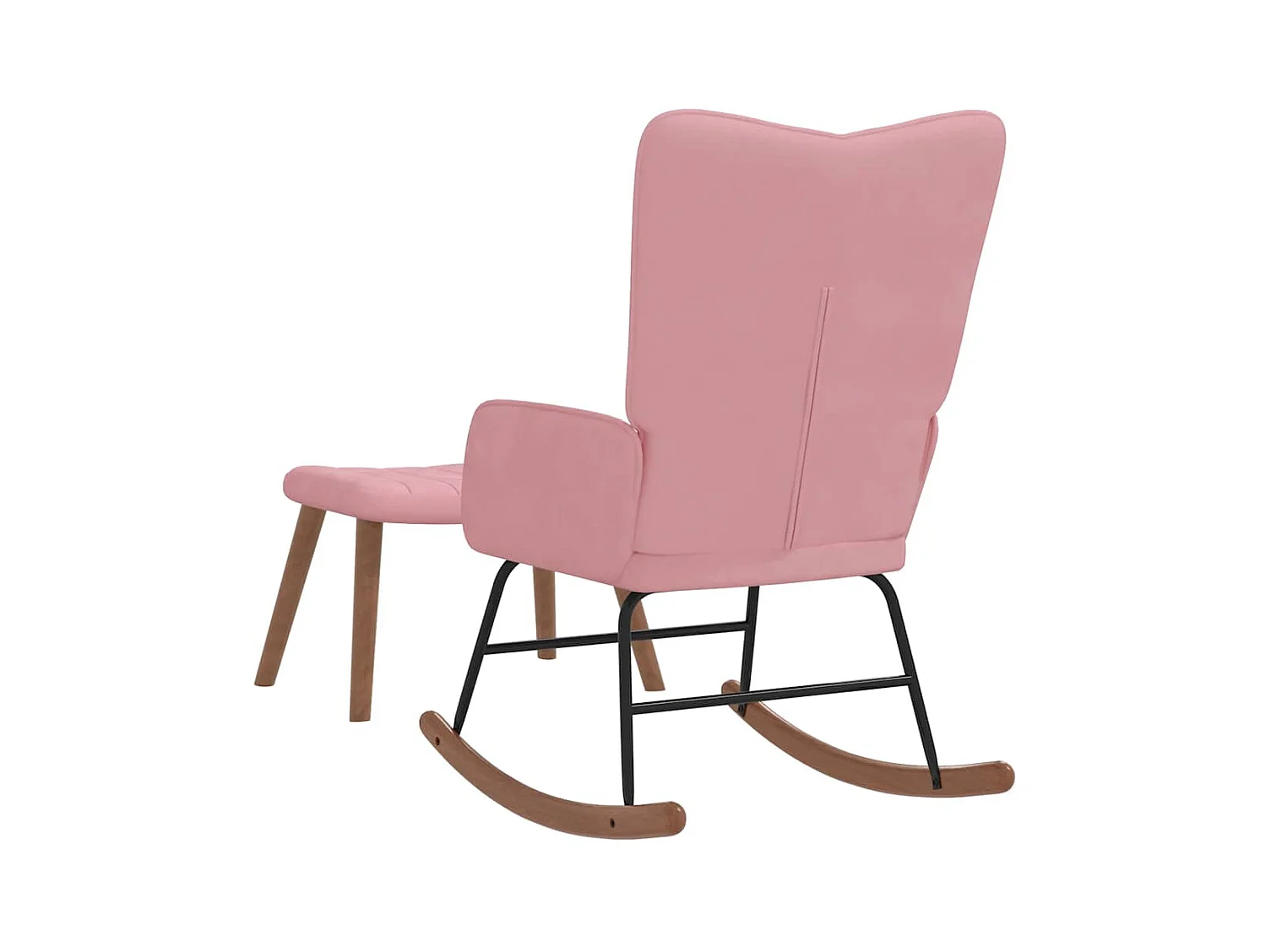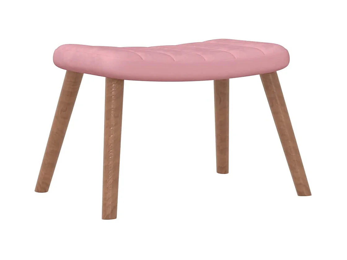 Schommelstoel met houten poten en voetenbank fluweel roze