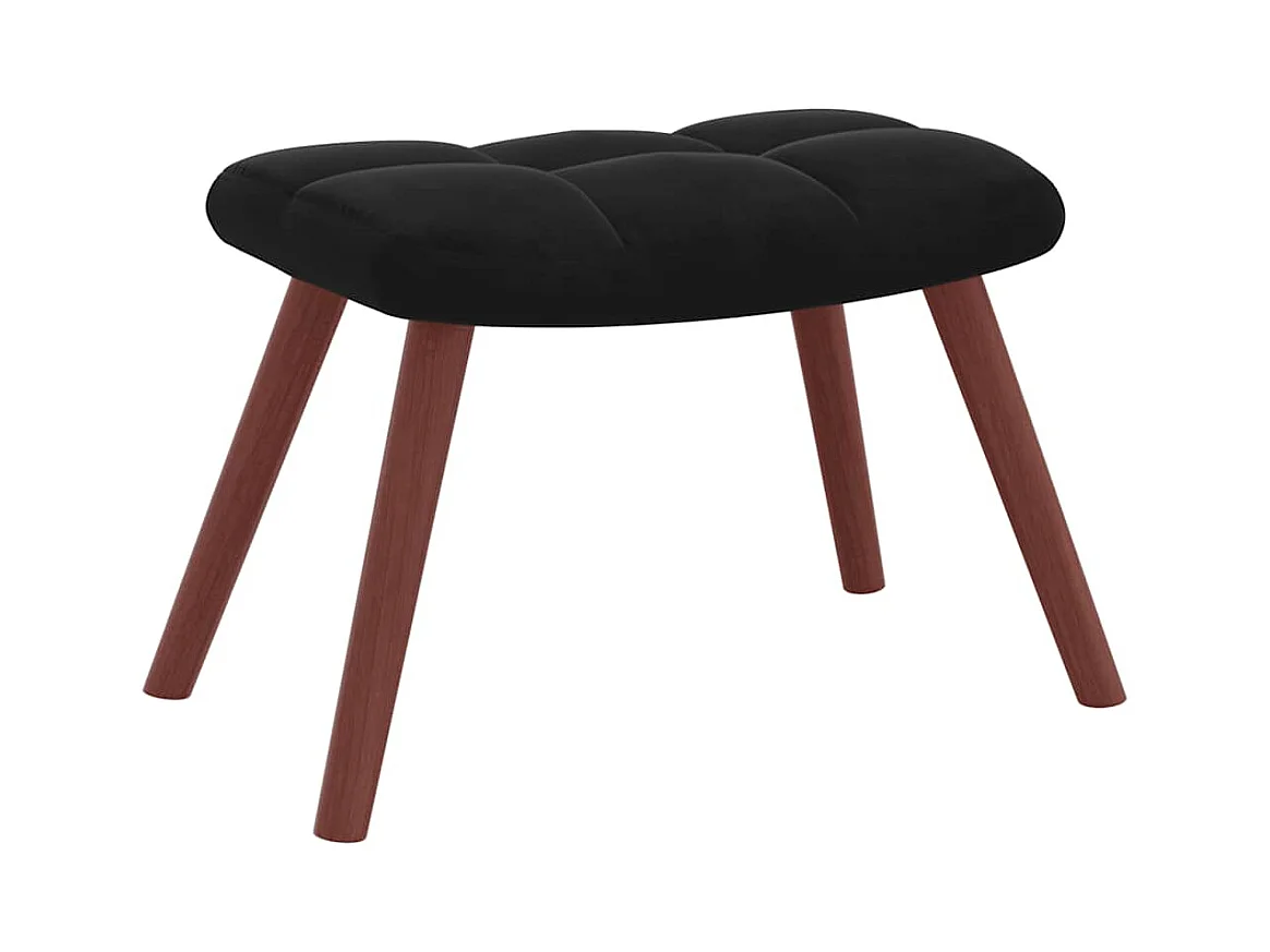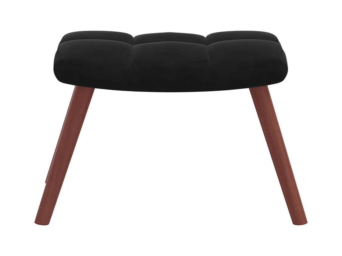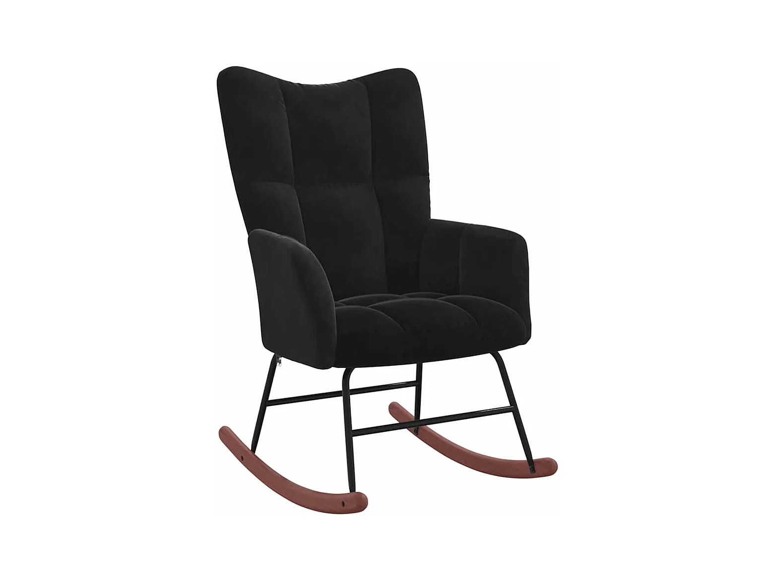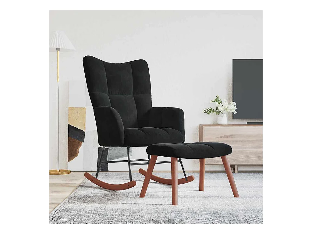 Schommelstoel met houten poten en voetenbank fluweel zwart