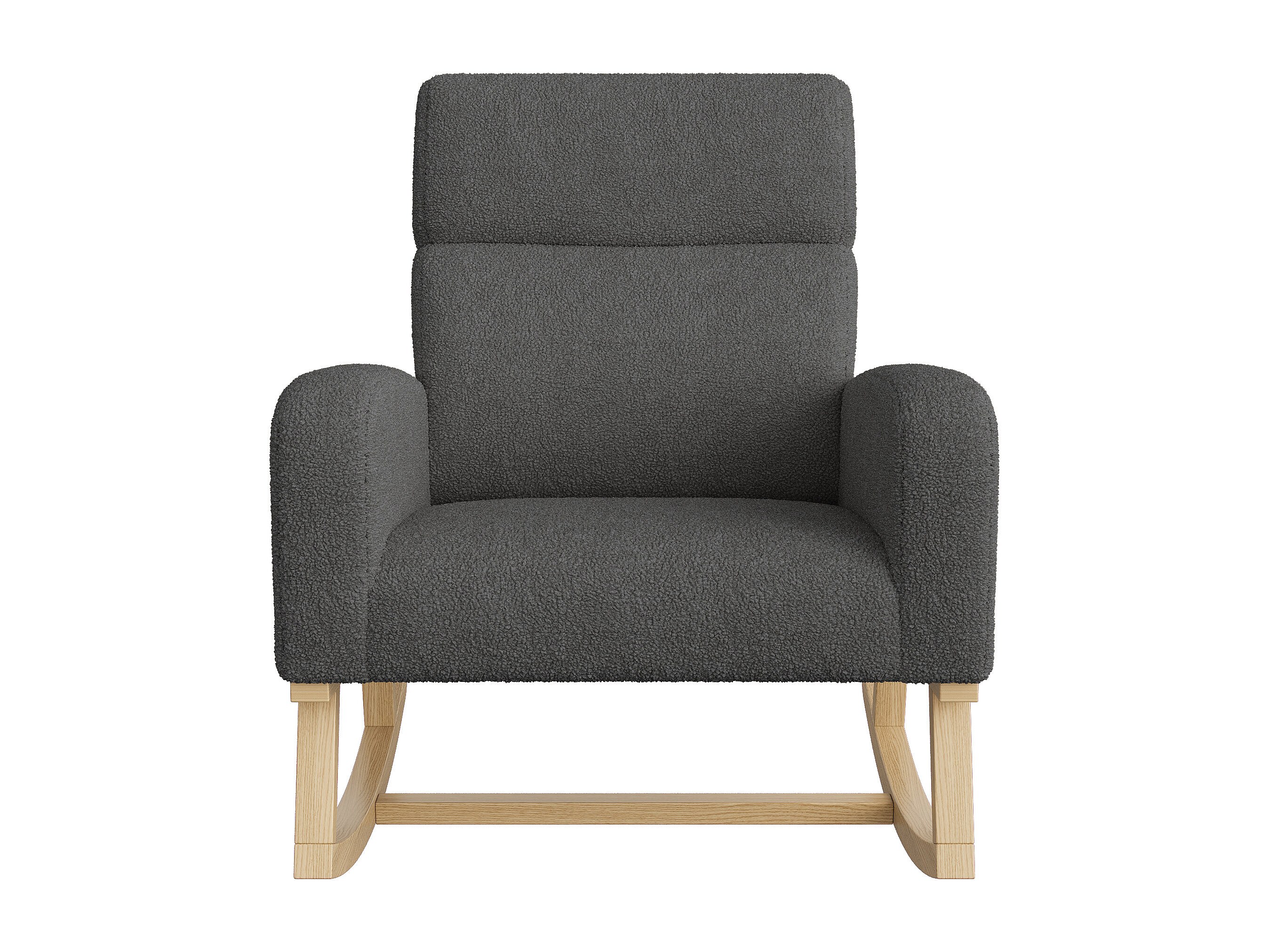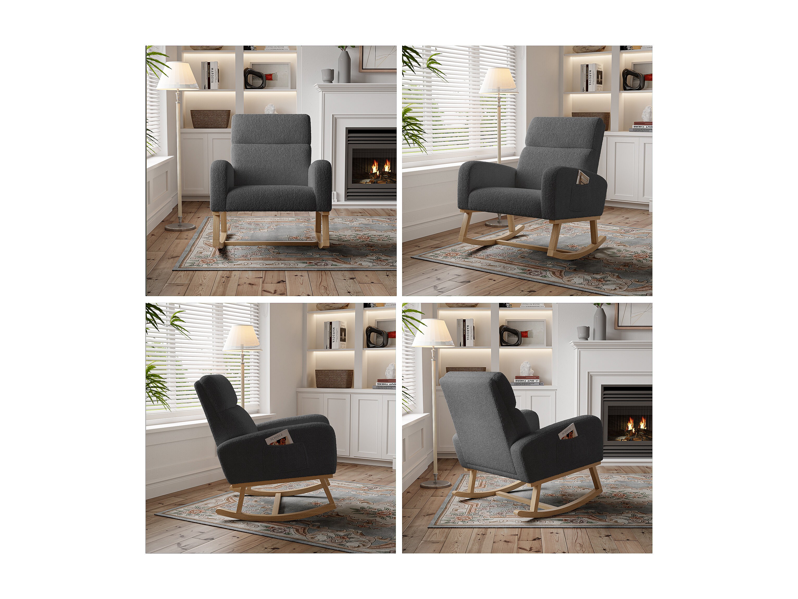 Schommelstoel, relaxstoel, met zakken en houten poten, donkergrijs teddyfluweel