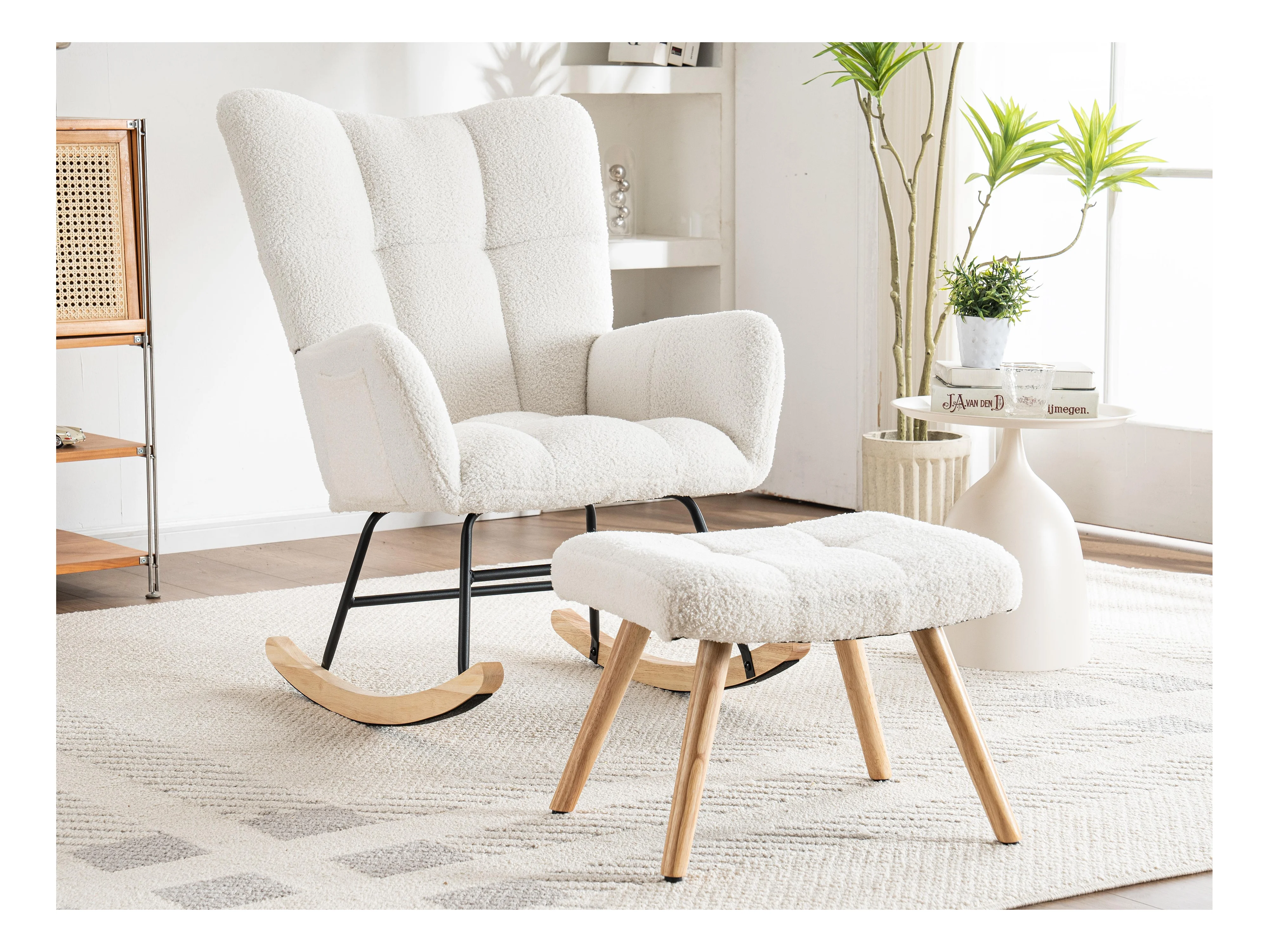 Schommelstoel met voetsteun en hoofdsteun - 65 x 94 x 92 cm - Teddy-Polar, evea hout en metaal - Wit