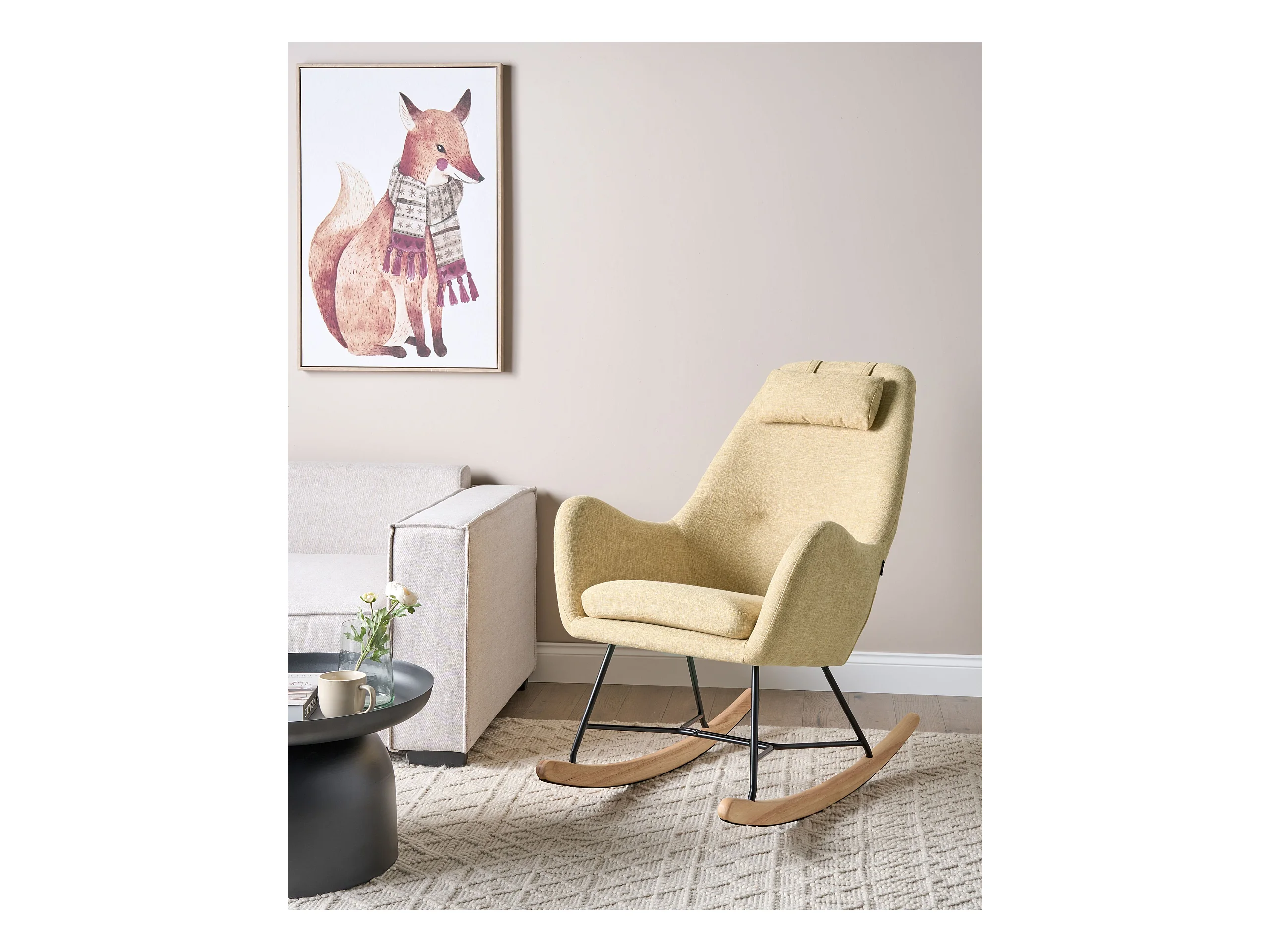 Schommelstoel met voetenbank, linnen stof, beige, met armleuningen, tot 130 kg (64x89x90 cm)