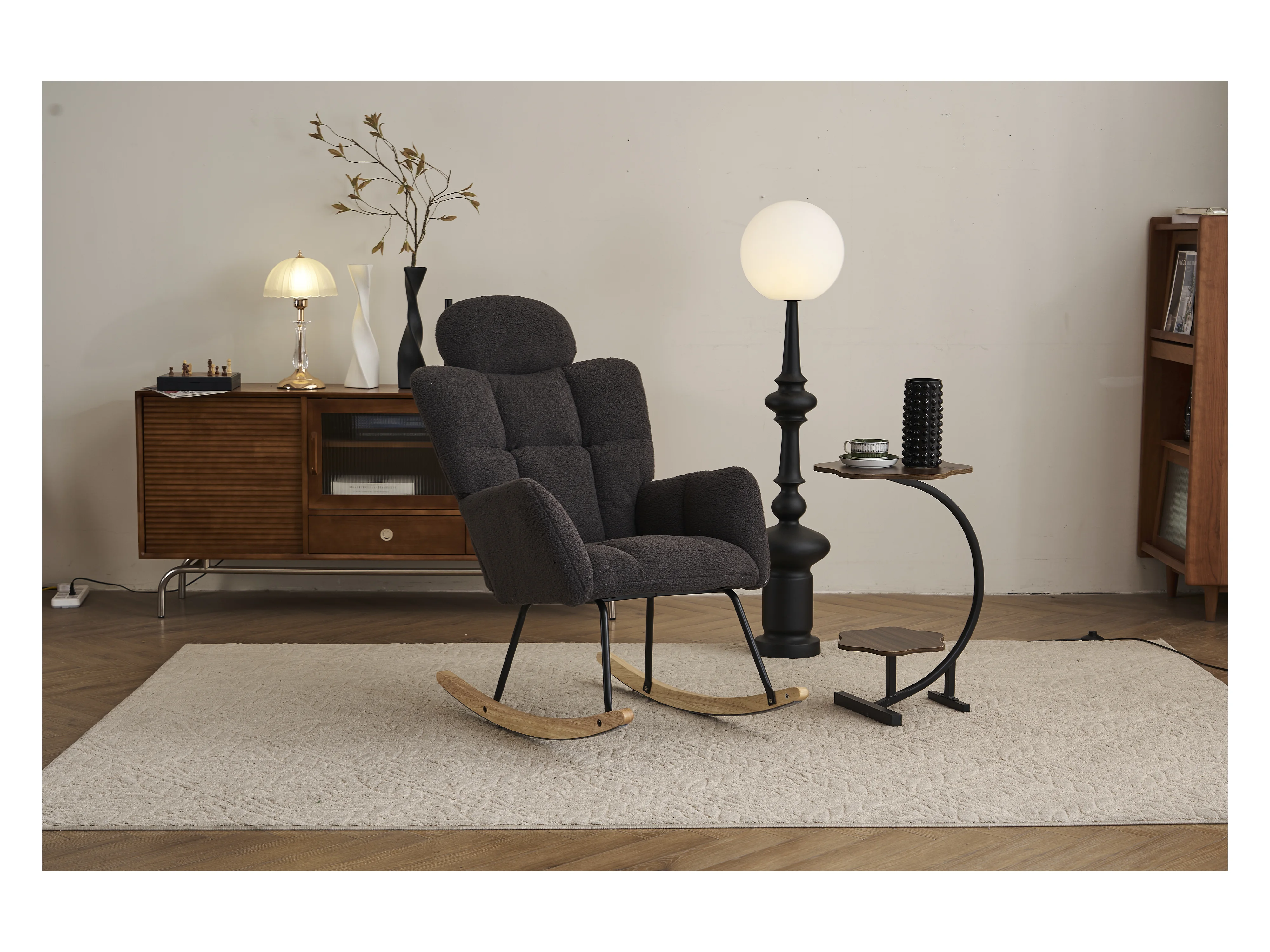 Schommelstoel van pluche stof met gewatteerde rugleuning en hoofdsteun, zachte stof, voor woonkamer en slaapkamer, donkergrijs (102x70x107 cm)