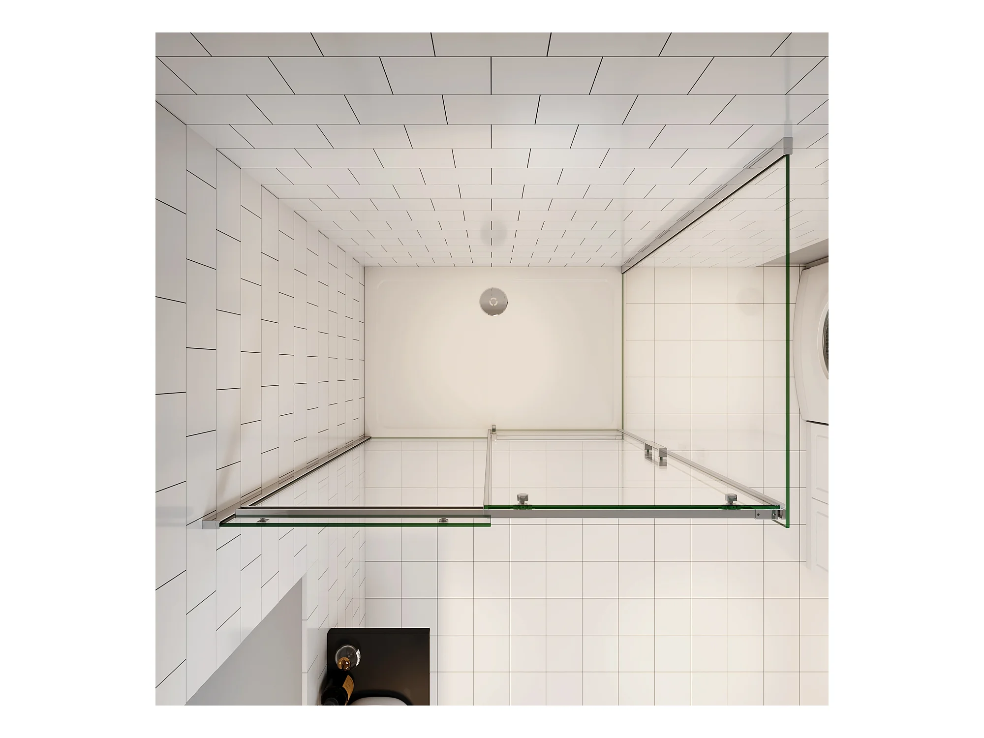 160x195cm Schuifbare douchecabine met zijwand 80x195cm,6mm helder glas,profiel van glanzend chroom.