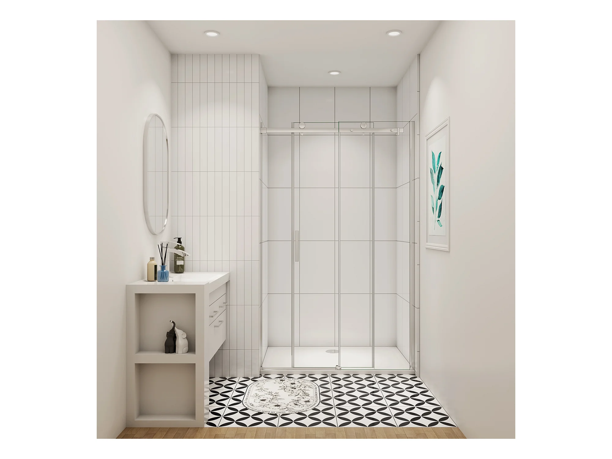 155x195cm Schuifbare douchedeur,6mm helder glas,hoogwaardige aluminium profielen,Chroom