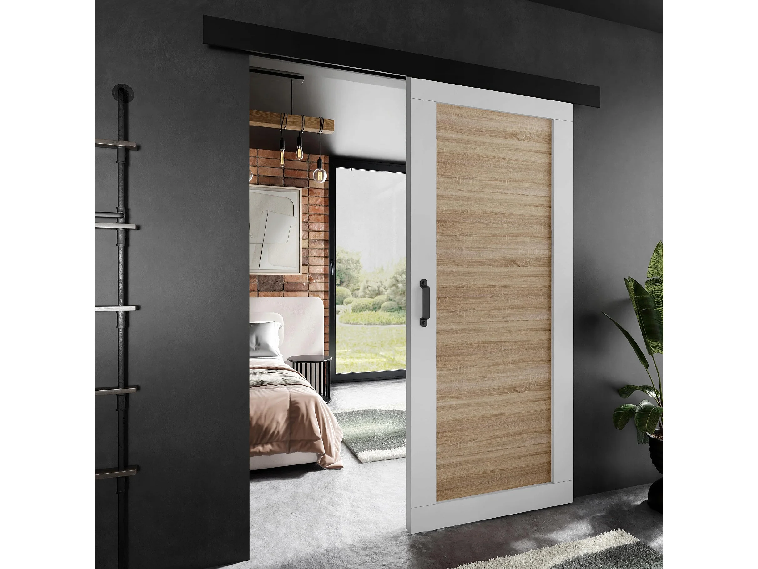 Schuifdeur ADIO 1 met afdeklijst wit en eiken sonoma 90