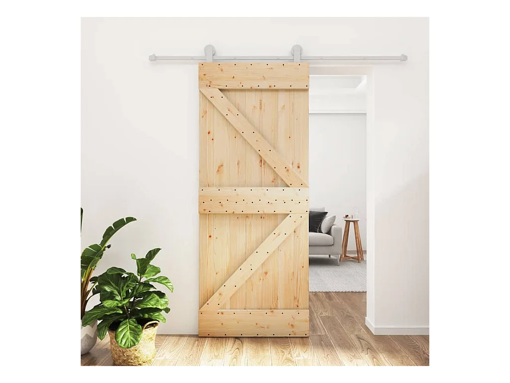 Schuifdeur en beslagset 85x210 cm massief grenen