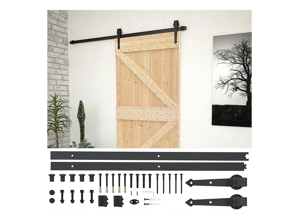 Schuifdeur en beslagset 90x210 cm massief grenen
