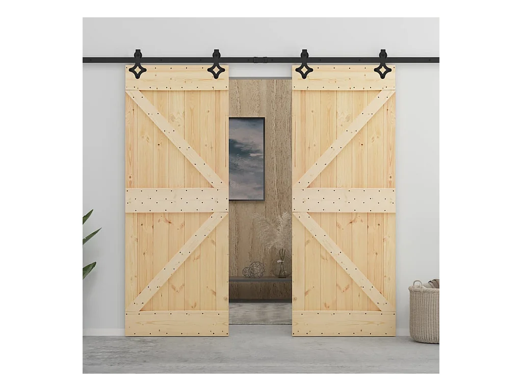 Schuifdeur en beslagset 90x210 cm massief grenen