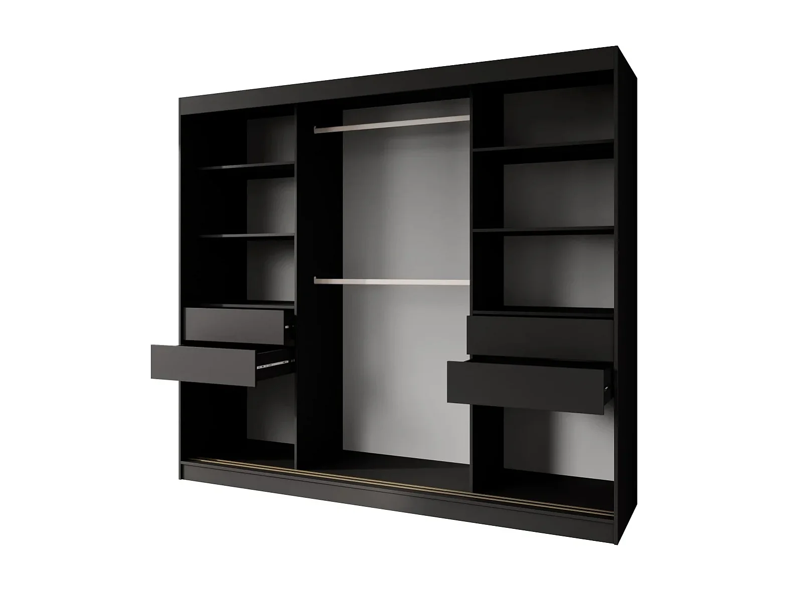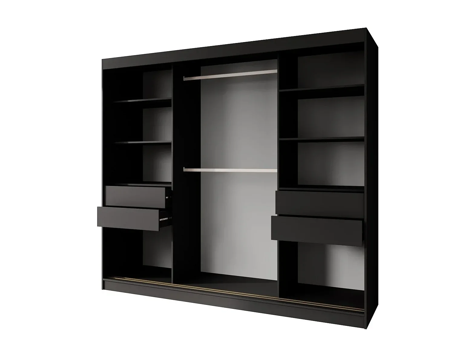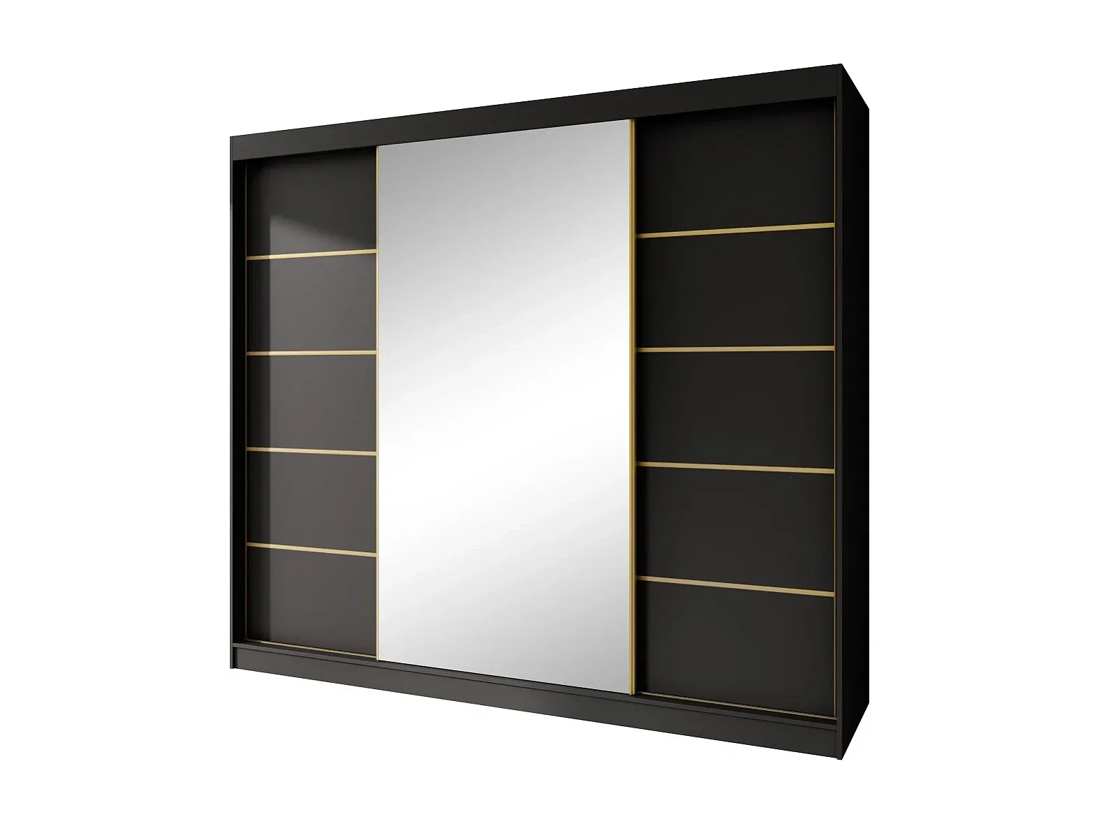 SCHUIFDEURKAST Marika Lux, 3-DEURS, met Lades, Zwart+Goud, 240 cm