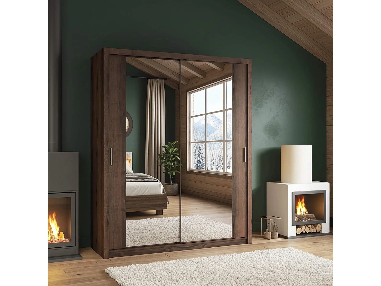 Schuifdeurkast met spiegel Tamiza 180 cm - Monastery Eiken