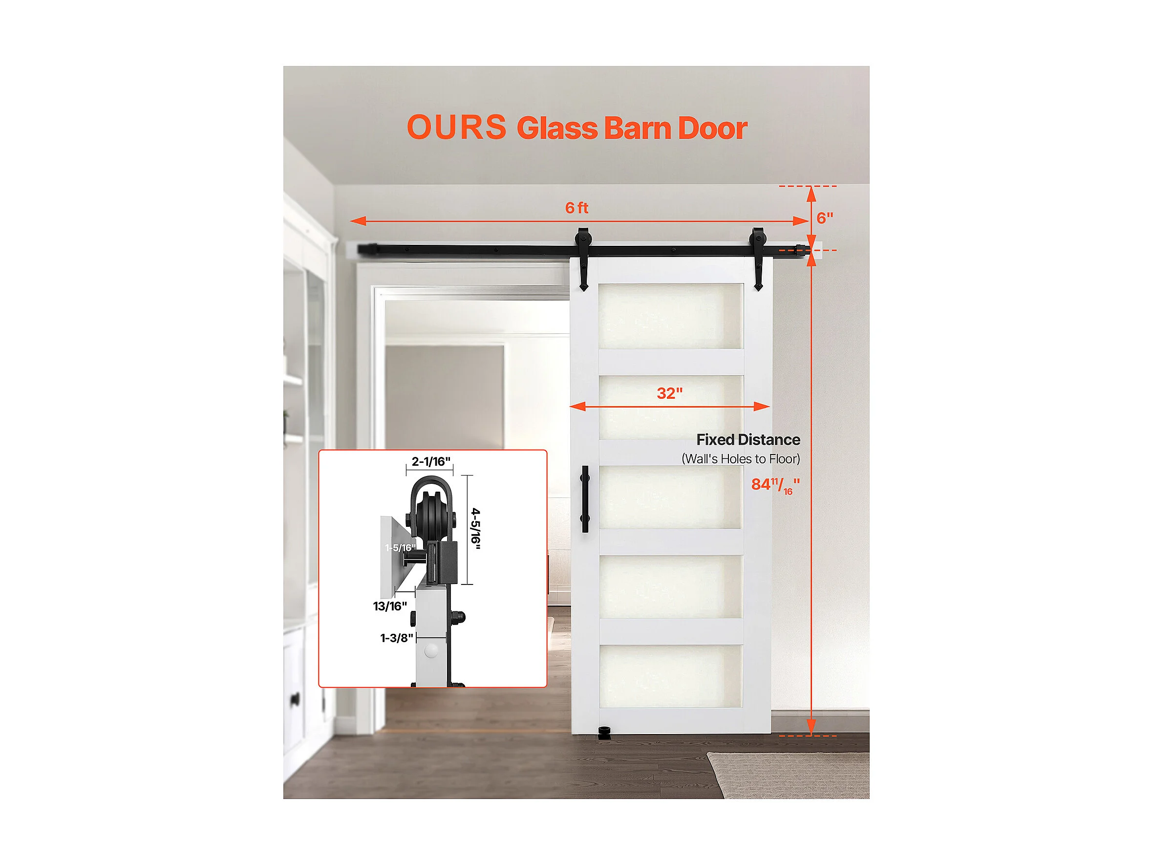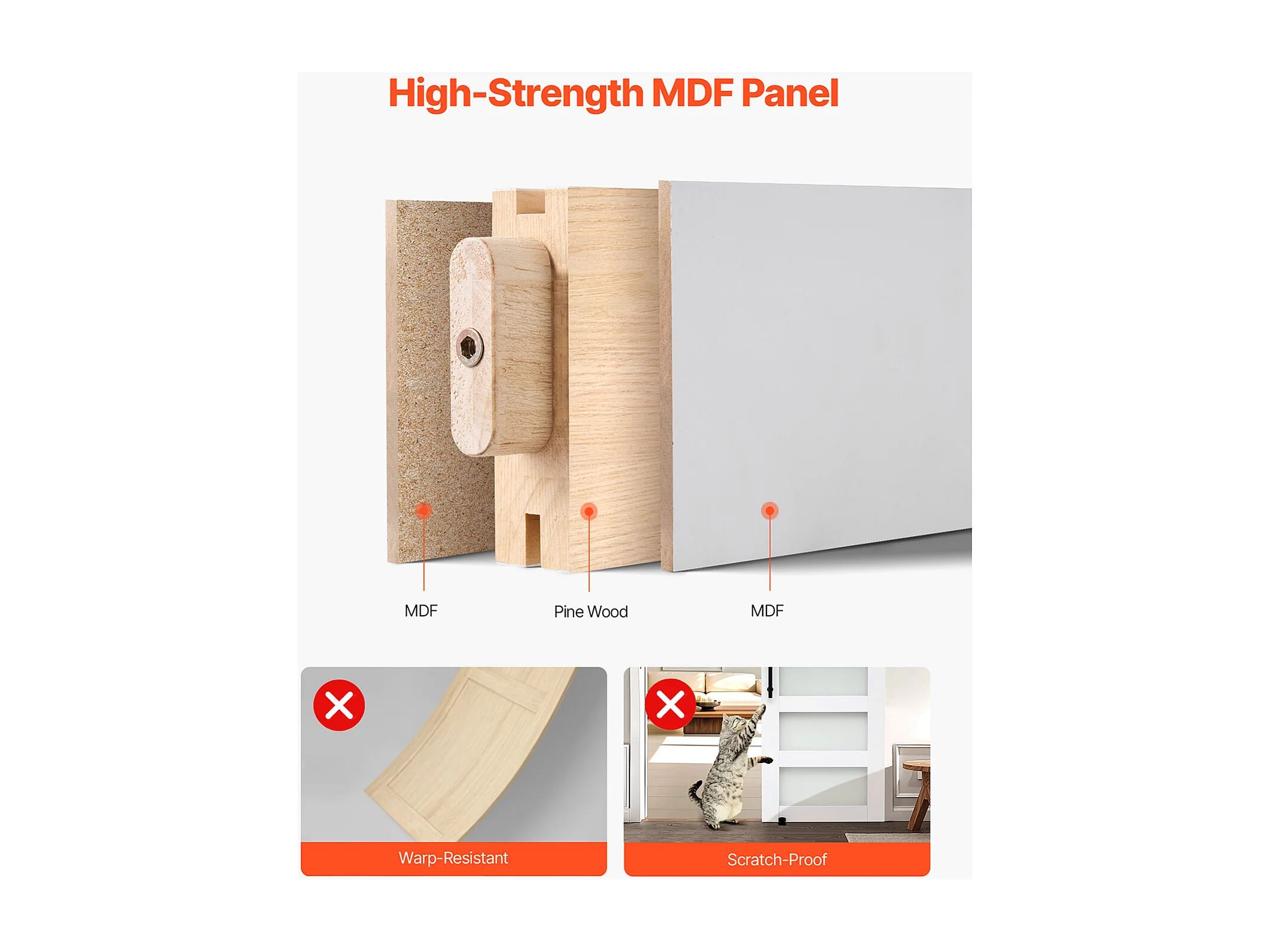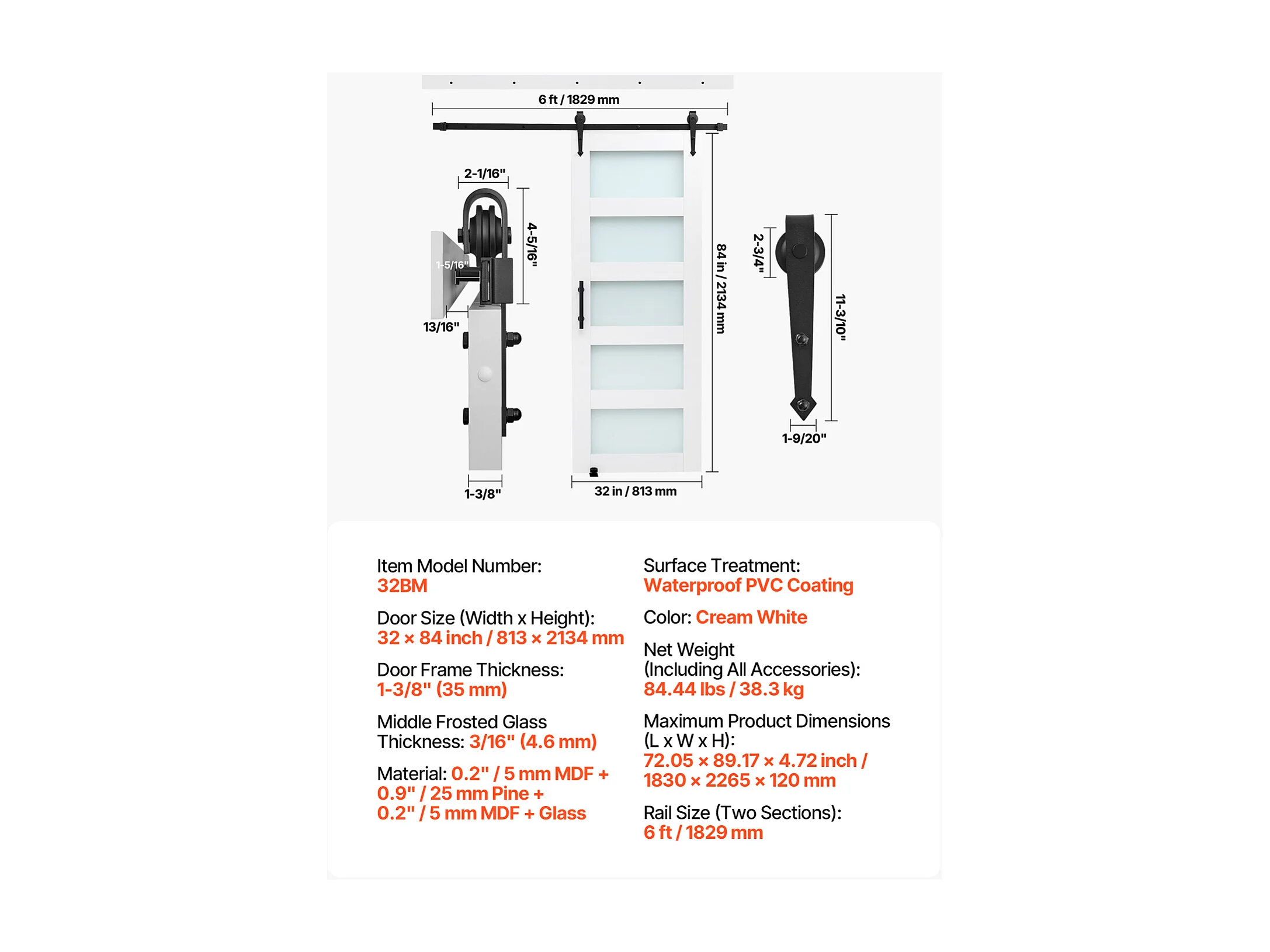 Schuur Schuifdeur SucceBuy, 81.3 x 213.4 cm, van MDF Paneel, Schuifdeurset met Beslagset, Waterdicht PVC Oppervlak