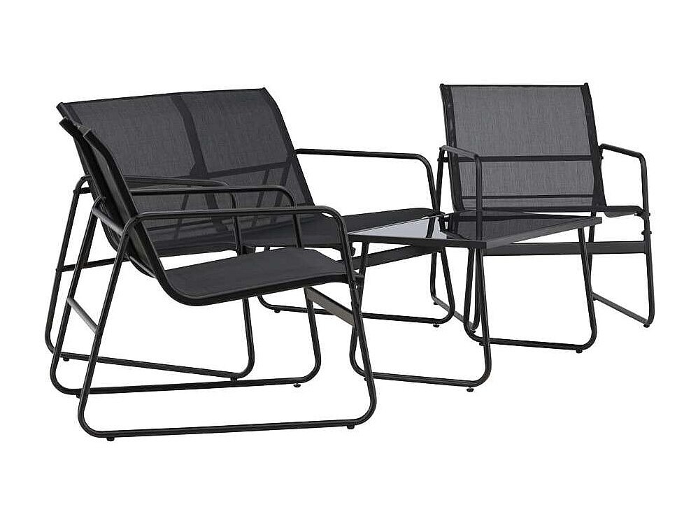 Bacong tuinmeubelset tafel, 2 stoelen zwart,donkergrijs.