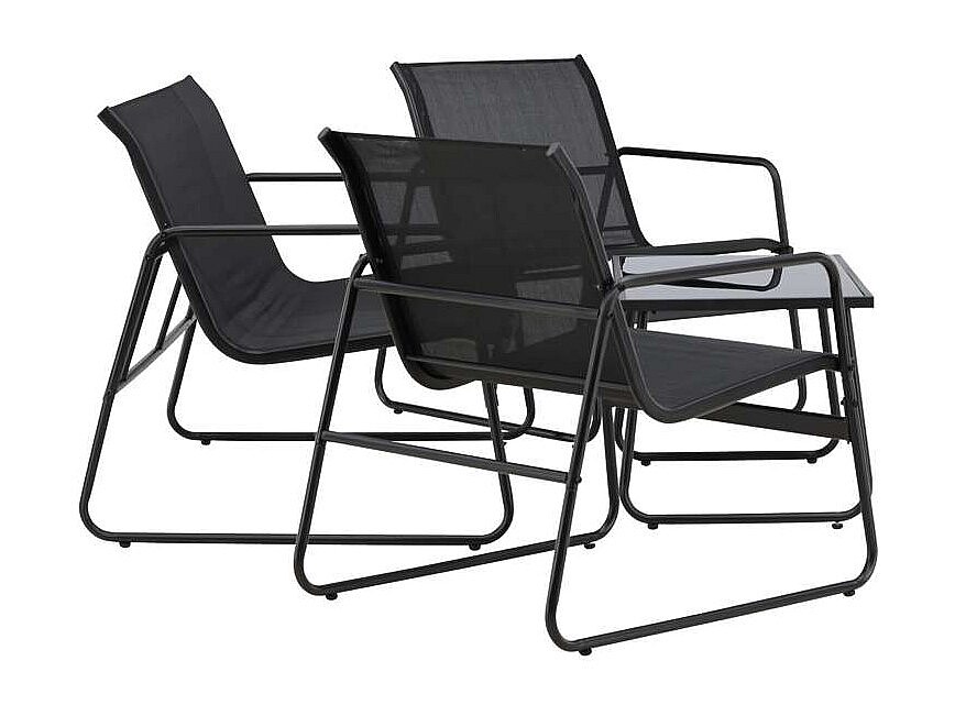 Bacong tuinmeubelset tafel, 2 stoelen zwart.