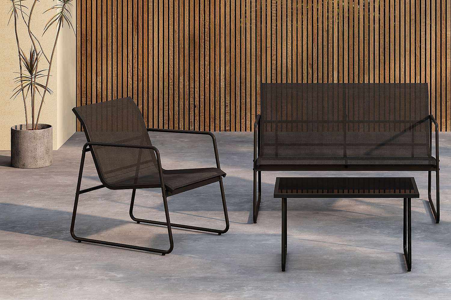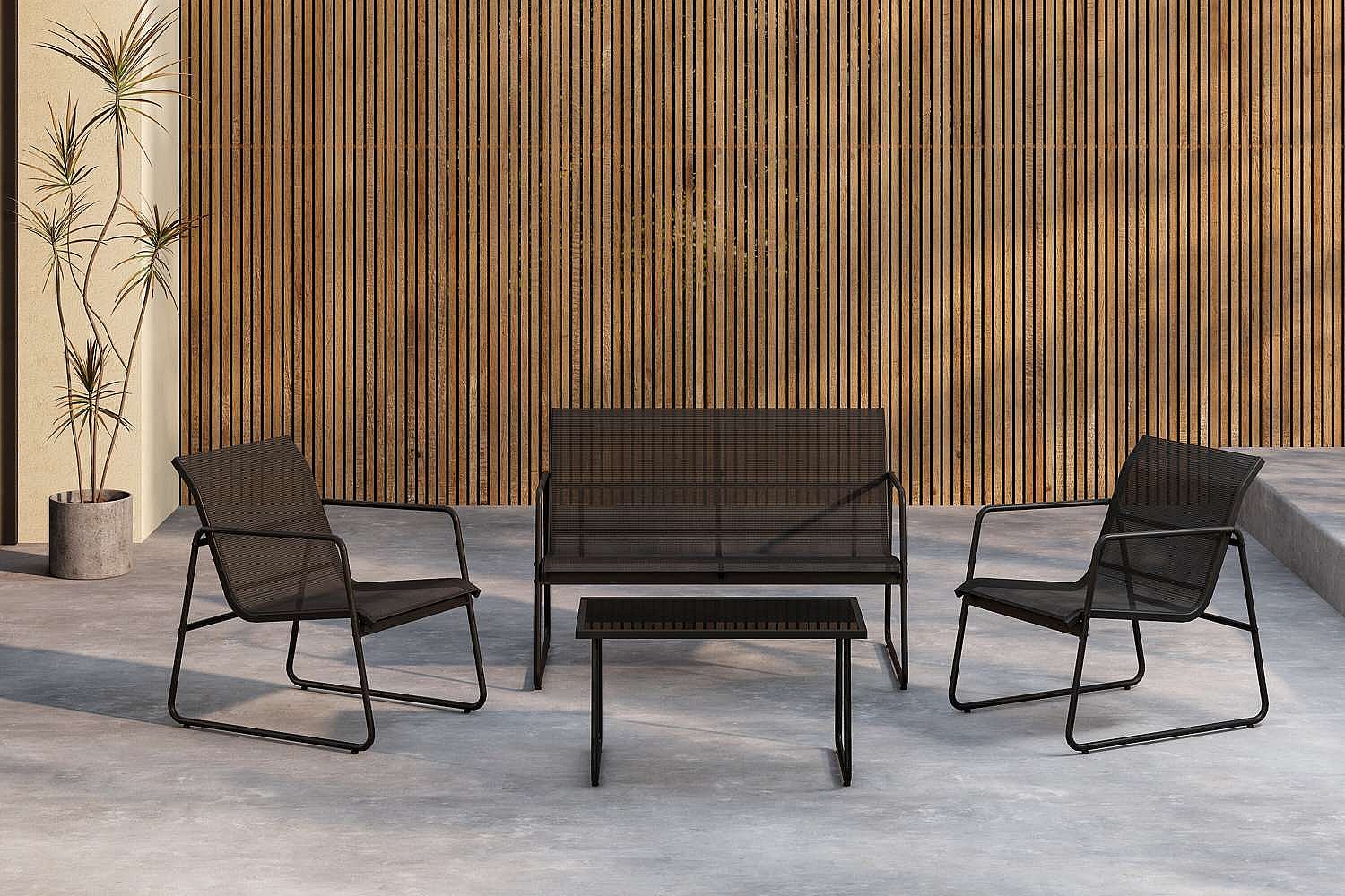 Scopello lounge set 1 bank, 2 stoelen, 1 salontafel zwart.
