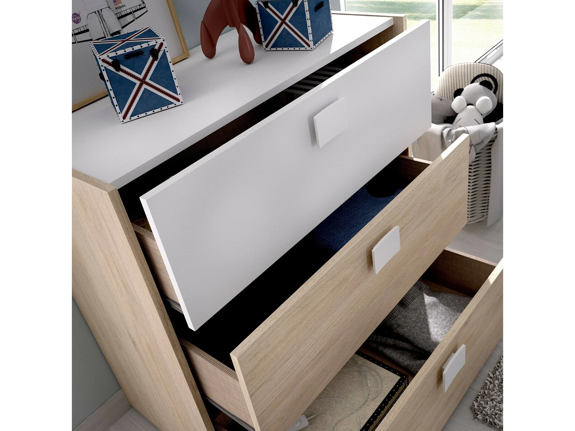 Dmora Ladekast "Sella" 43x80x81h cm Bruin Eiken, 3 Laden, Schuifopen, Schuifsluiting