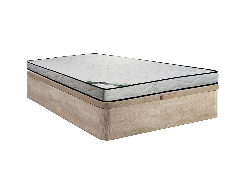 Set 160 x 200 cm bedbodem met opbergruimte, licht naturel + matras van schuim en tijk van bamboe van 15 cm dik - KANANI van NATUREA
