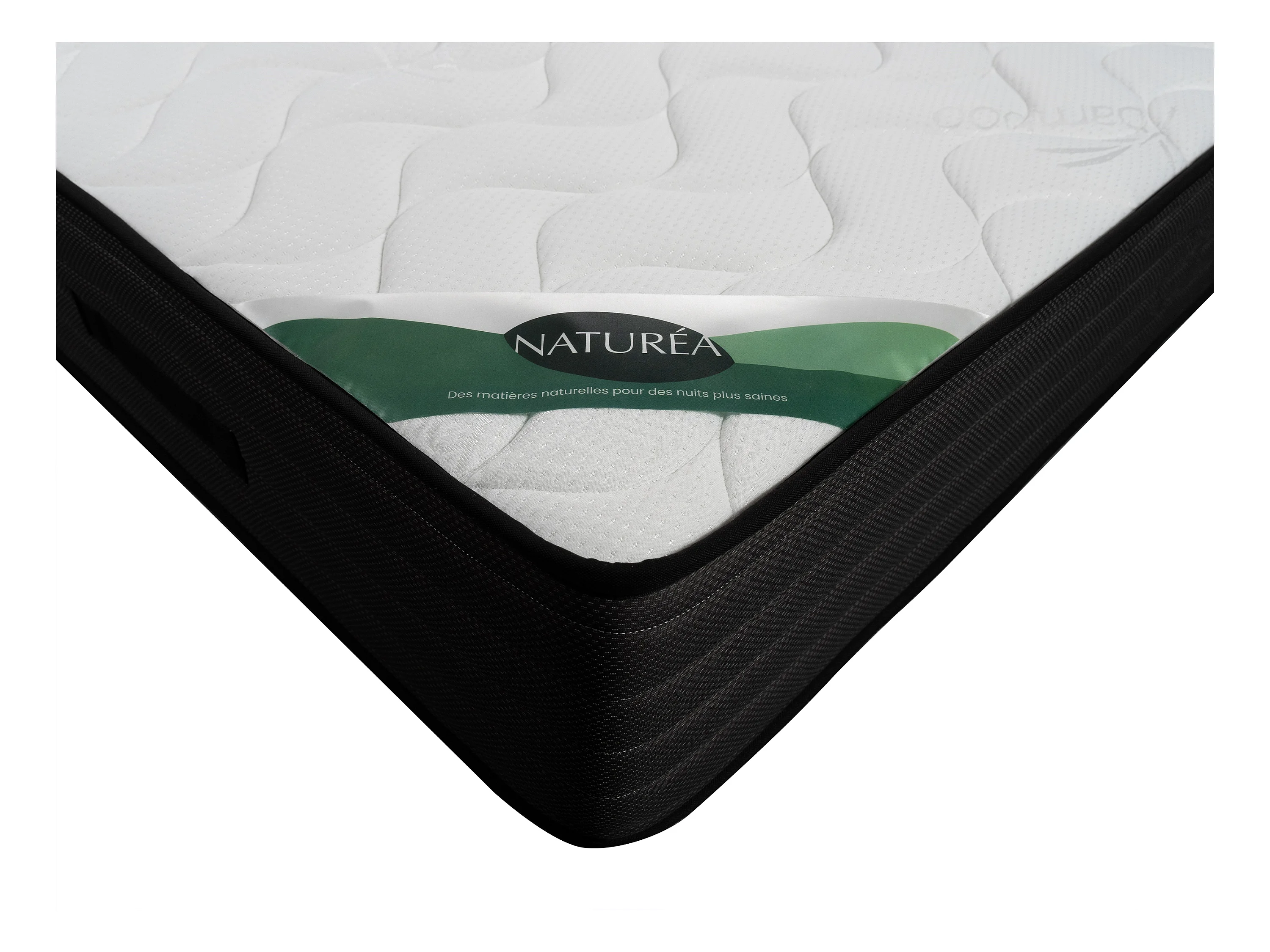 Set 160 x 200 cm bedbodem met opbergruimte, licht naturel + matras van schuim en tijk van bamboe van 25 cm dik - BERENDI van NATUREA