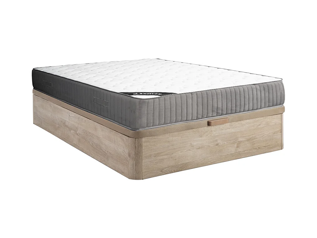 Set 160 x 200 cm bedbodem met opbergruimte, licht naturel + matras van veerkrachtig schuim en instap van latex van 30 cm dik - MALINO van YSMÉE