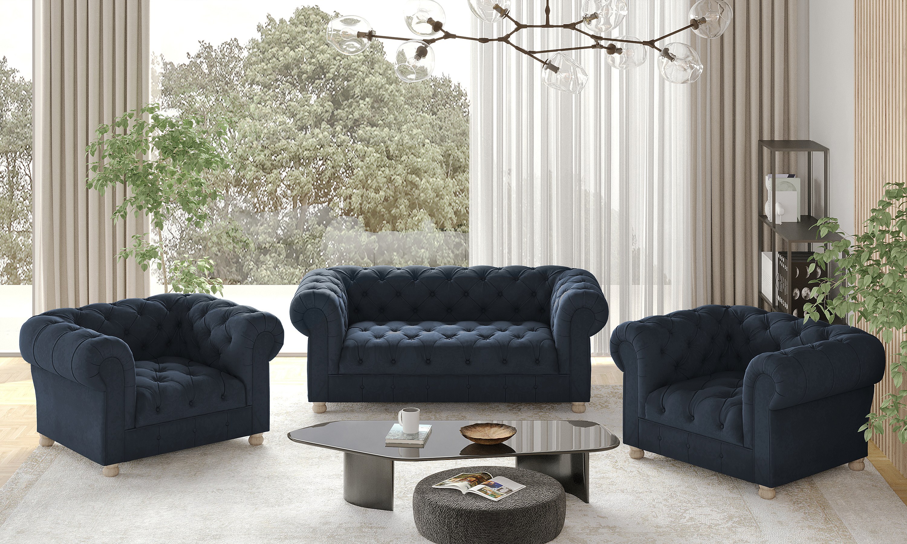 Set 2+1+1 CHESTERFIELD, stof Whisper, blauw