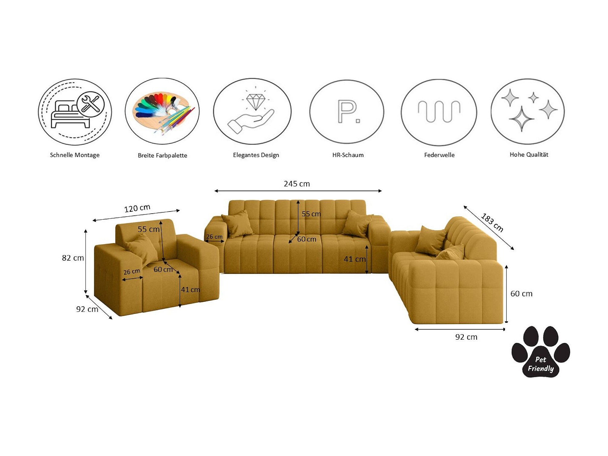 Set 3+2+1 NIMES, stof Portland, geel