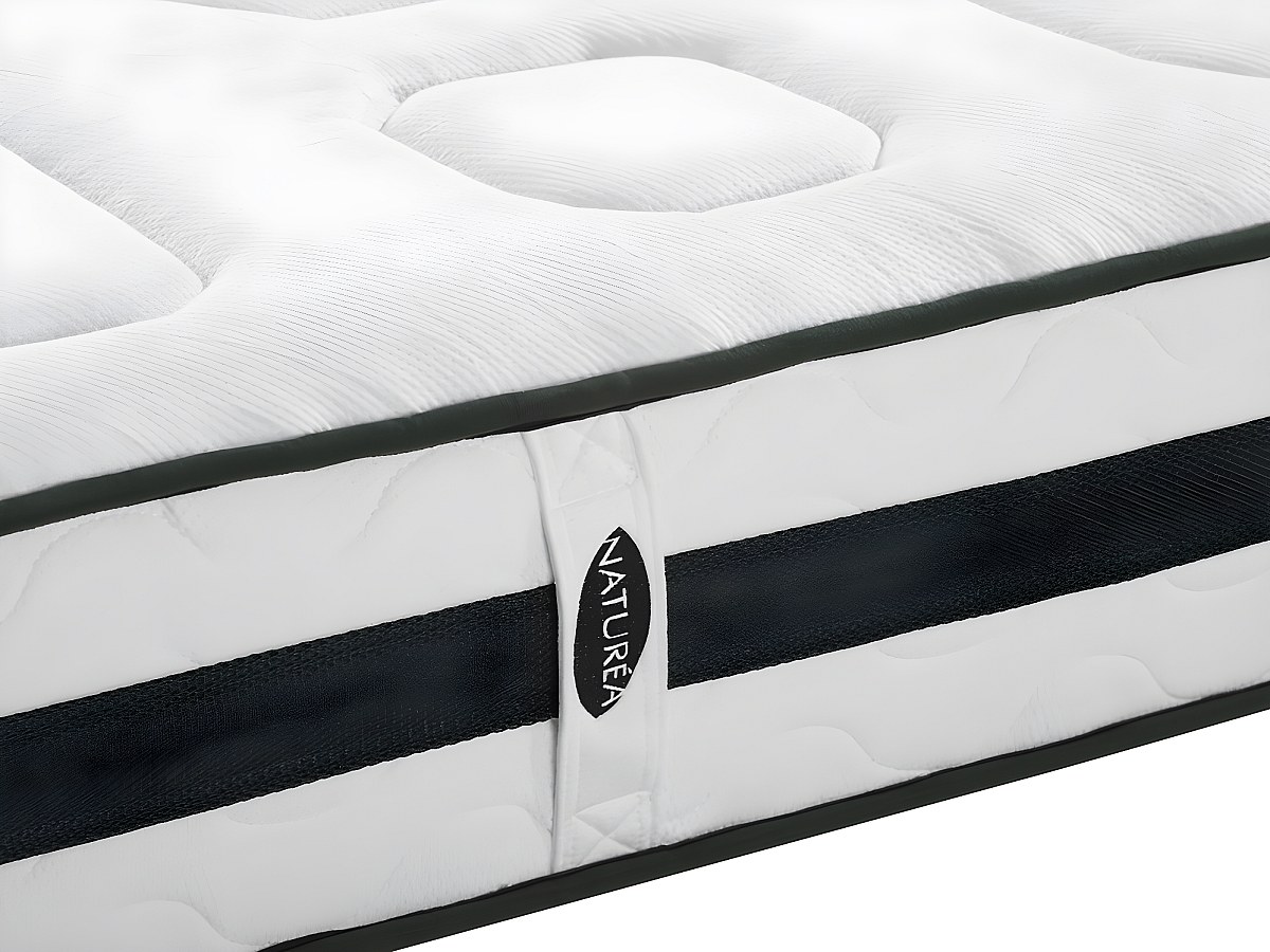 - 4 verticale handvatten met NATUREA geborduurd om het matras eenvoudig te kunnen verplaatsen.
