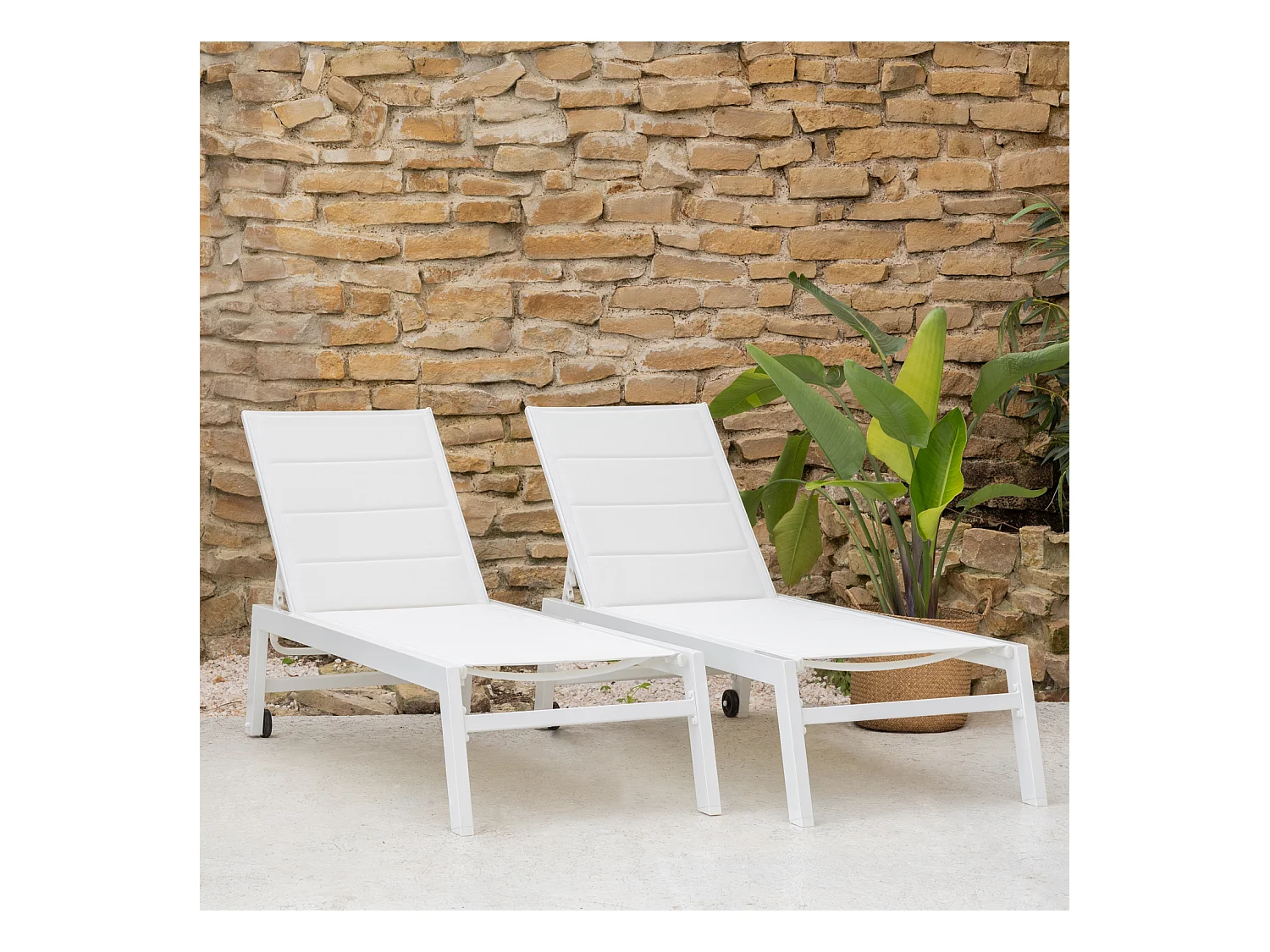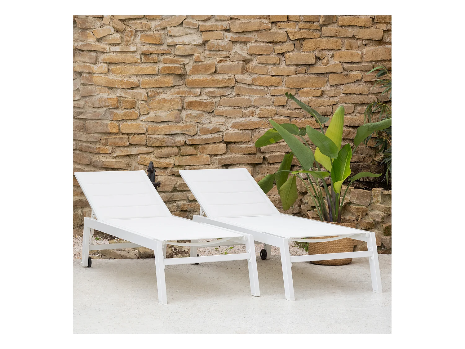 Set van 2 BARBADOS zonnebedden in wit textilene - wit aluminium