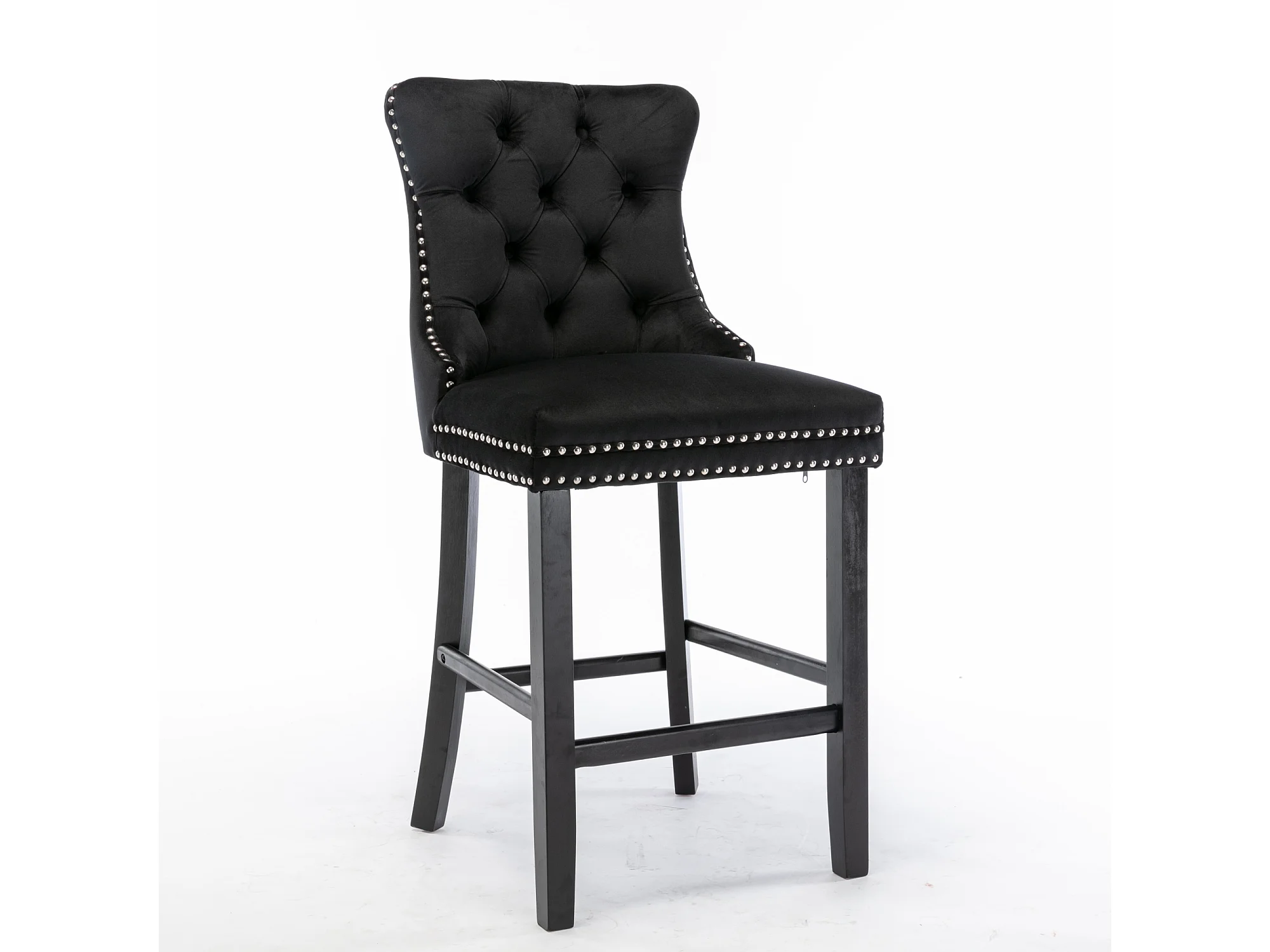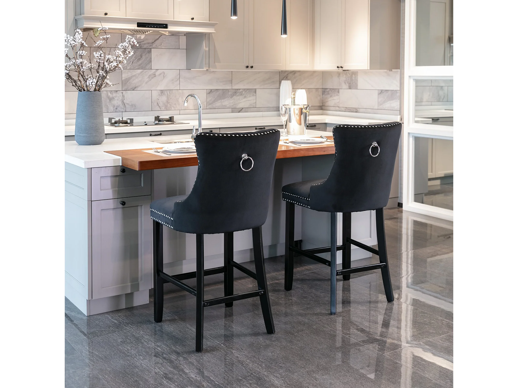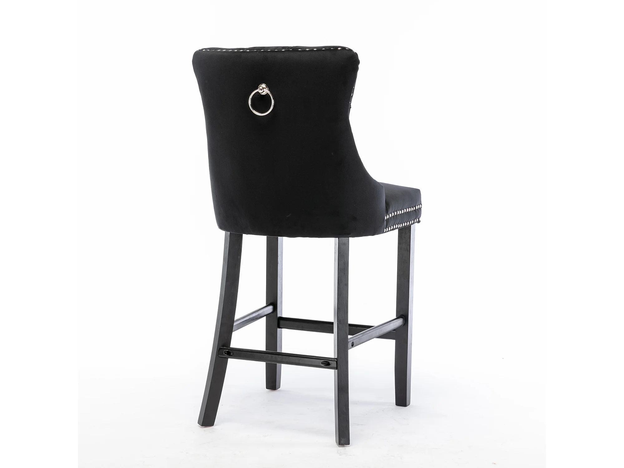 Set van 2 barkrukken met houten poten - Zwart fluweel