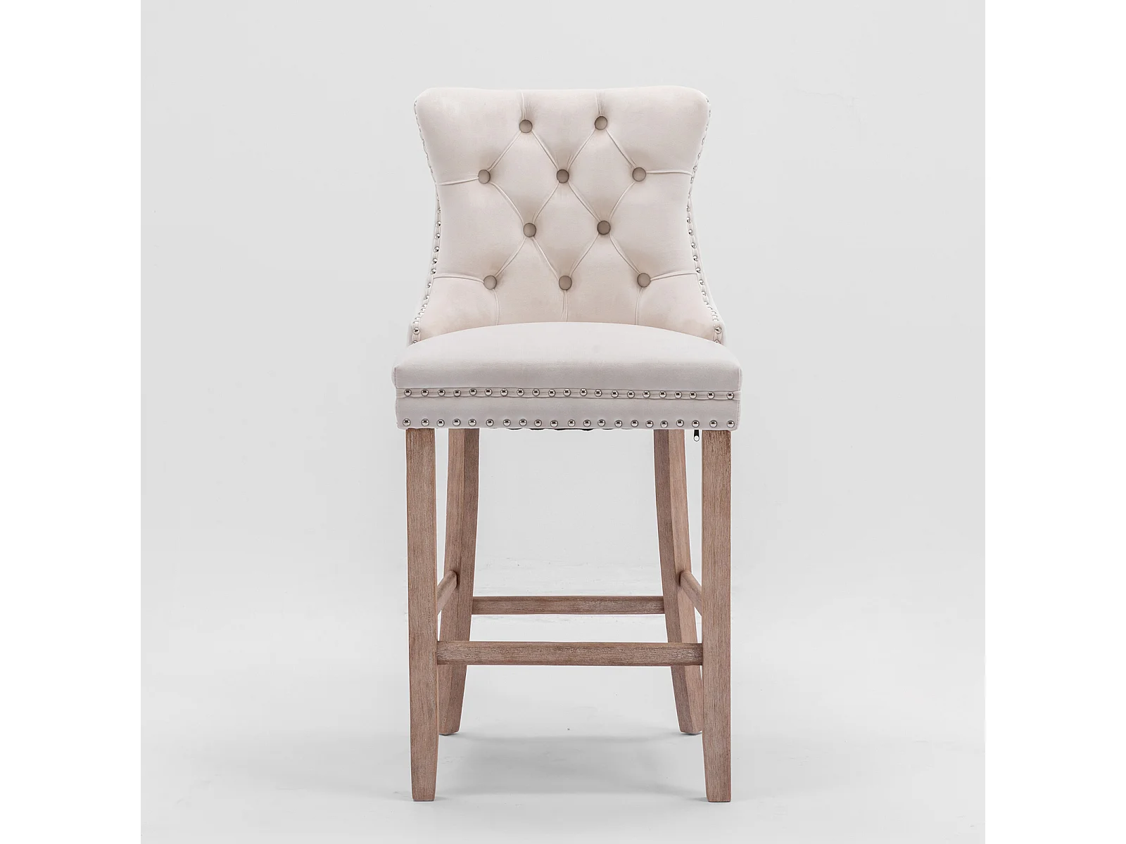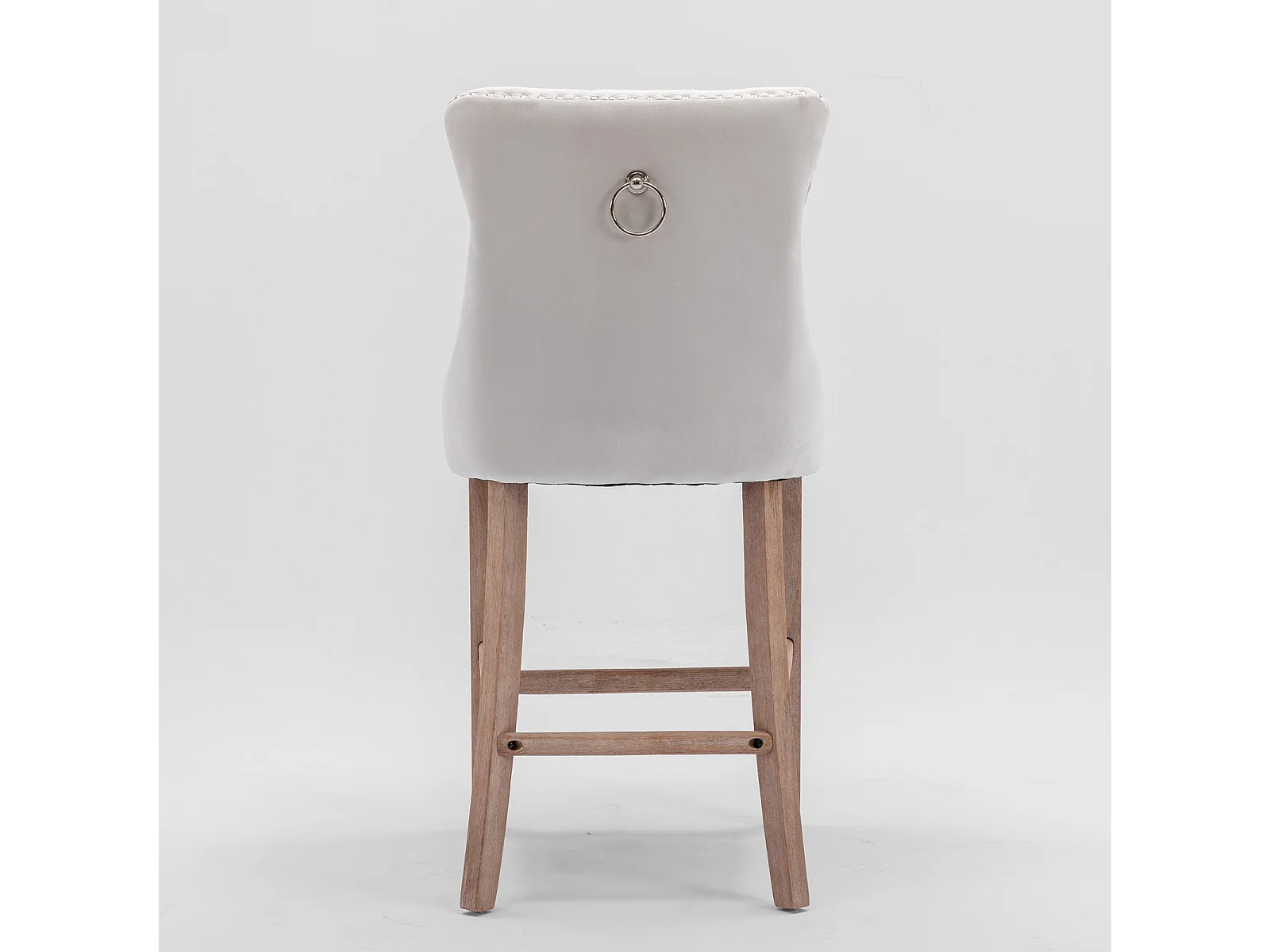 Set van 2 barkrukken met poten van natuurlijk hout - Beige fluweel