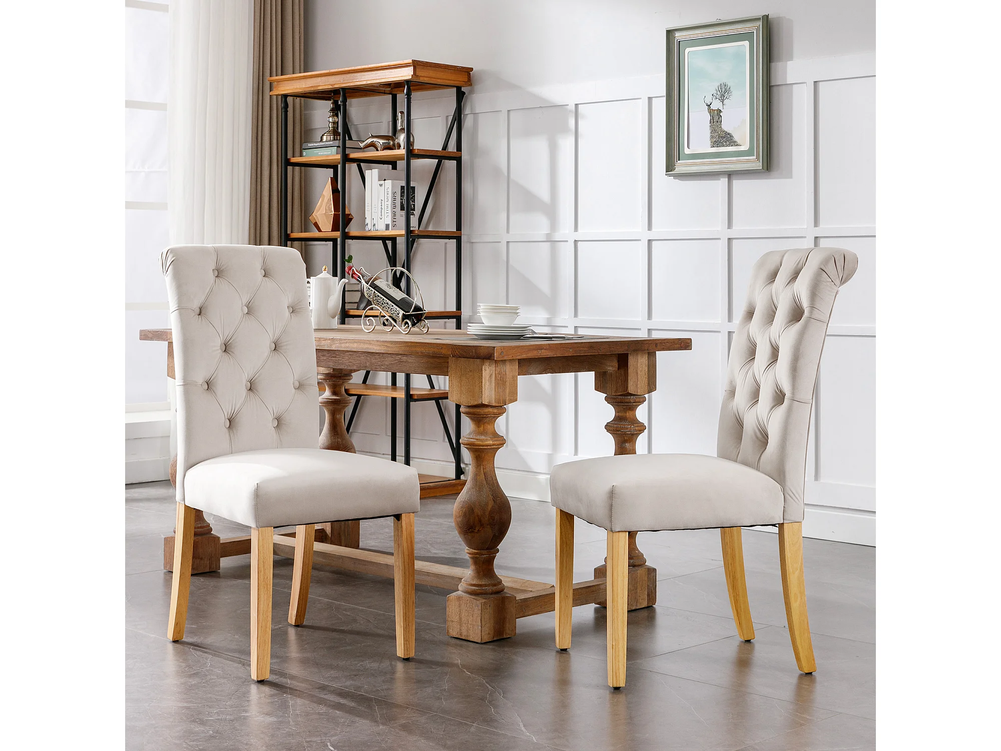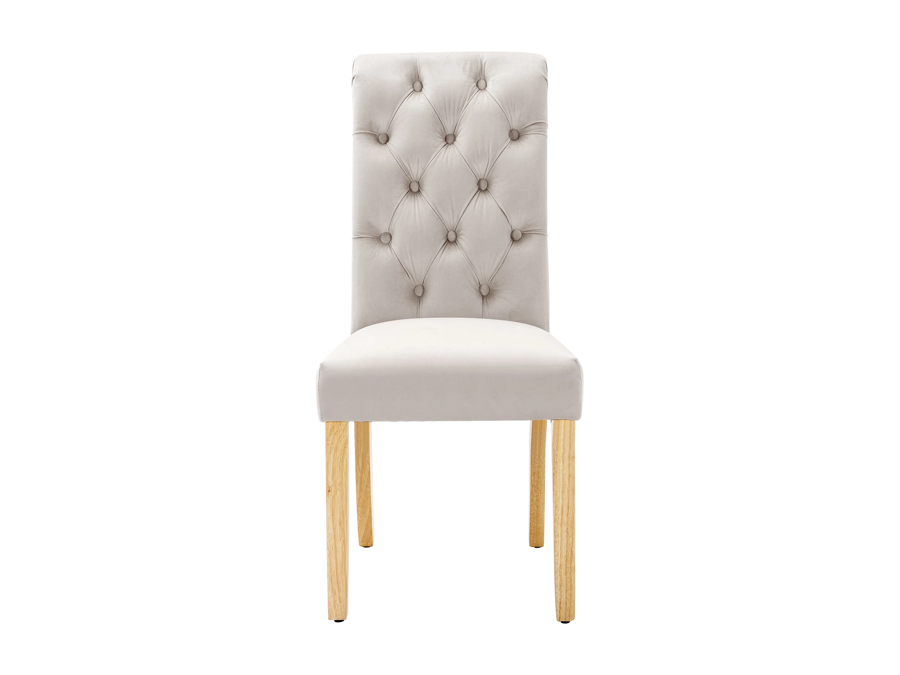 Set van 2 beige fluwelen stoelen met een 54 cm hoge rugleuning - Eikenhouten poten
