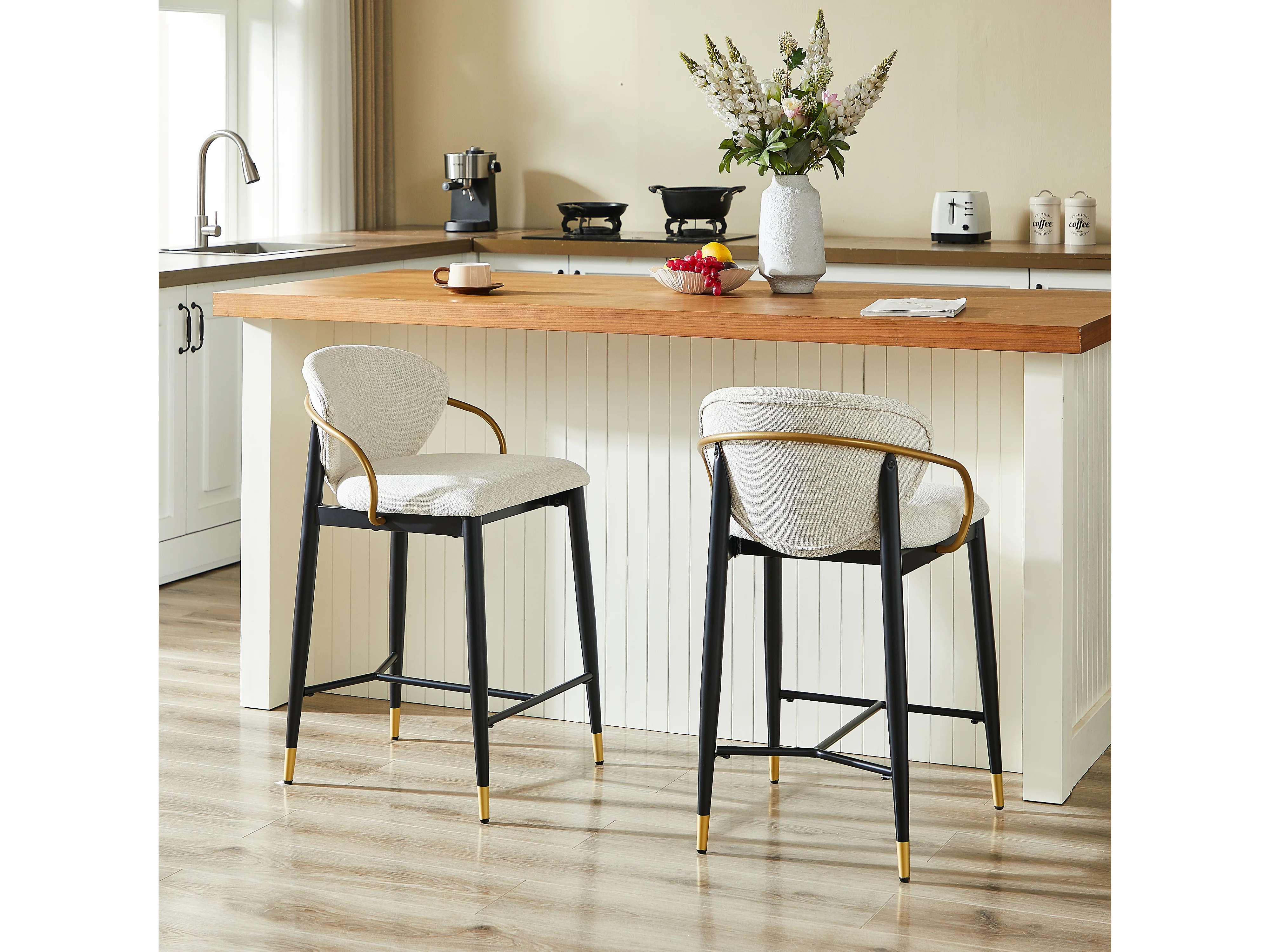 Set van 2 beige stoffen barkrukken - Metalen frame