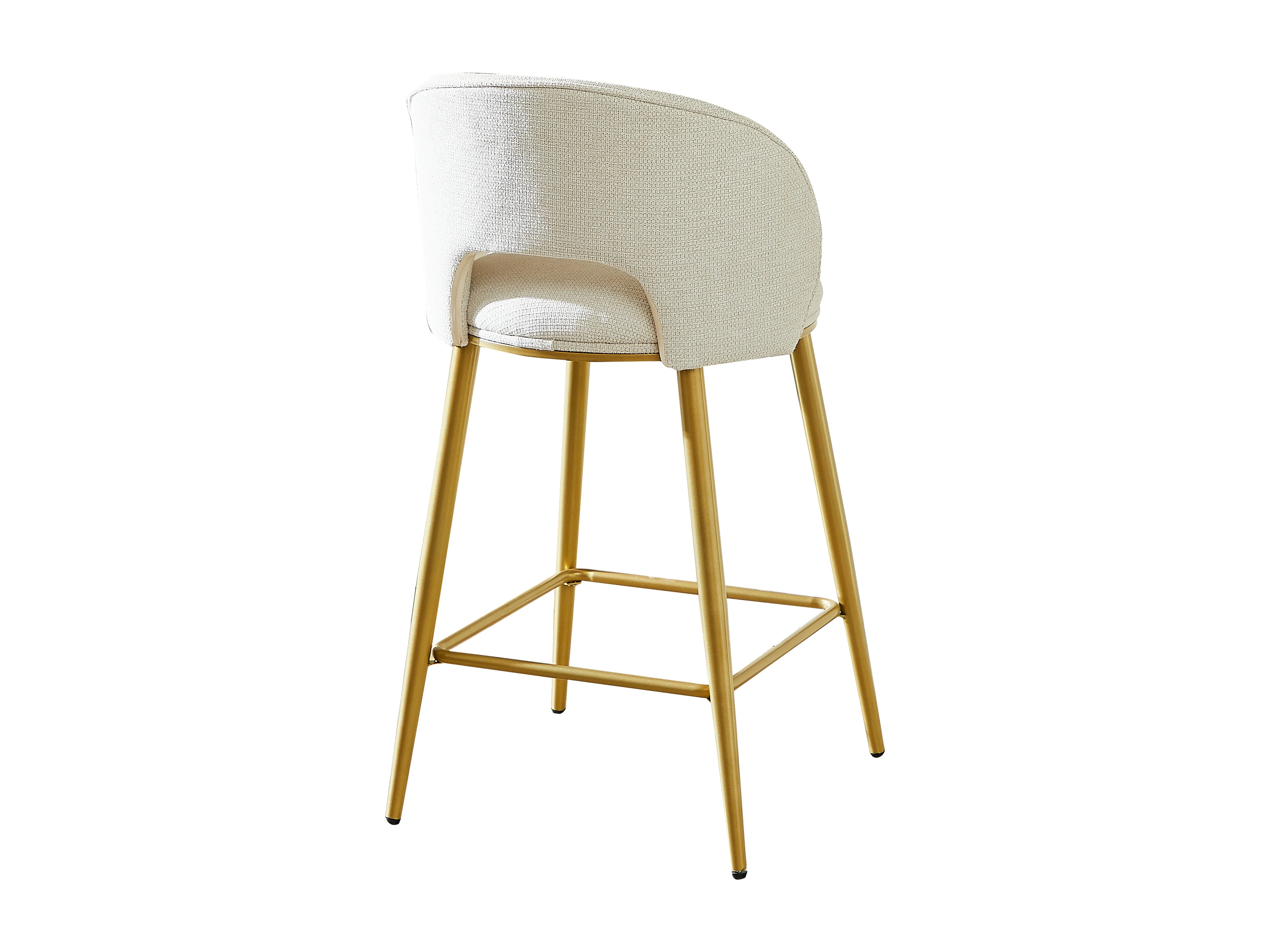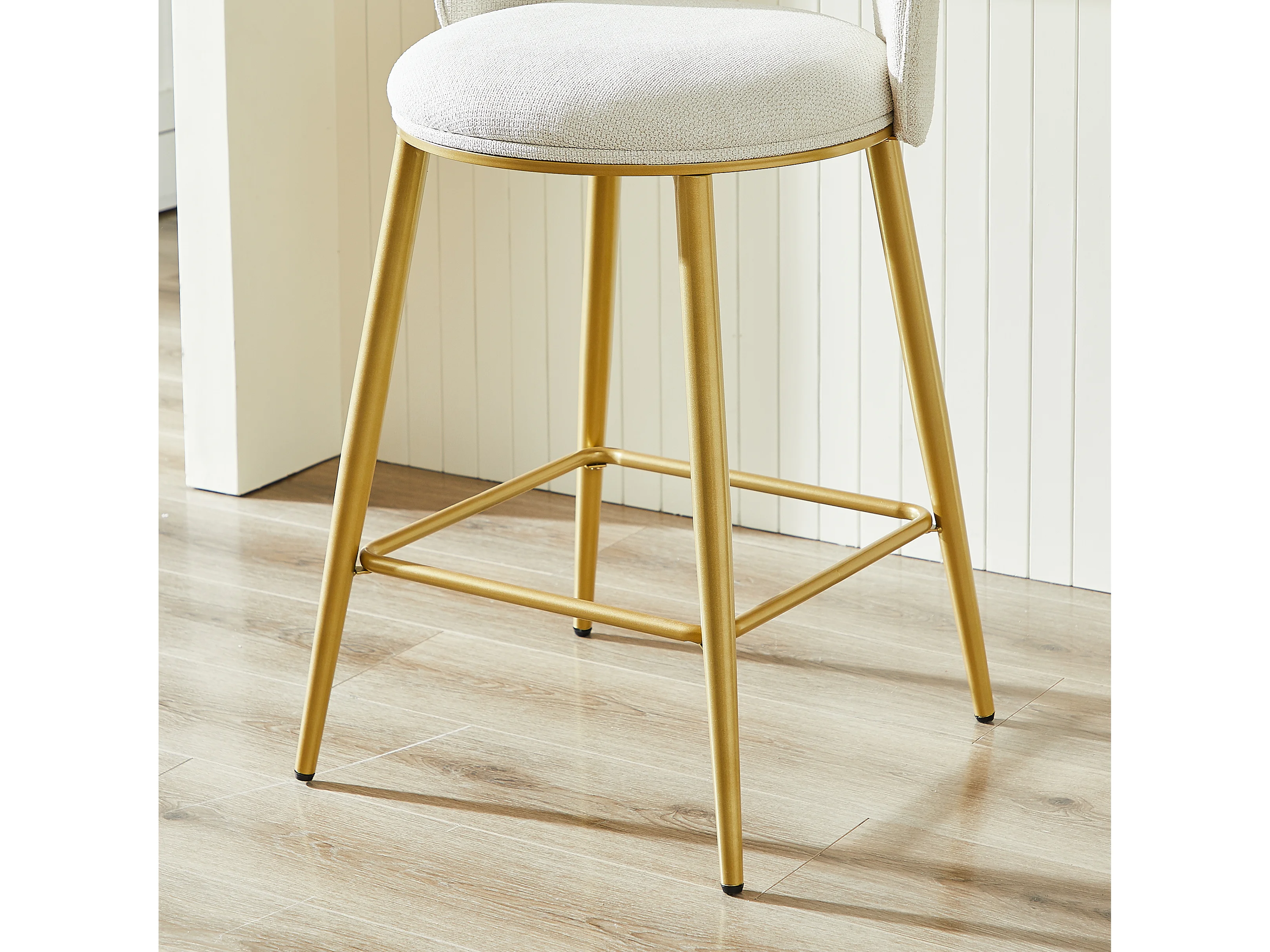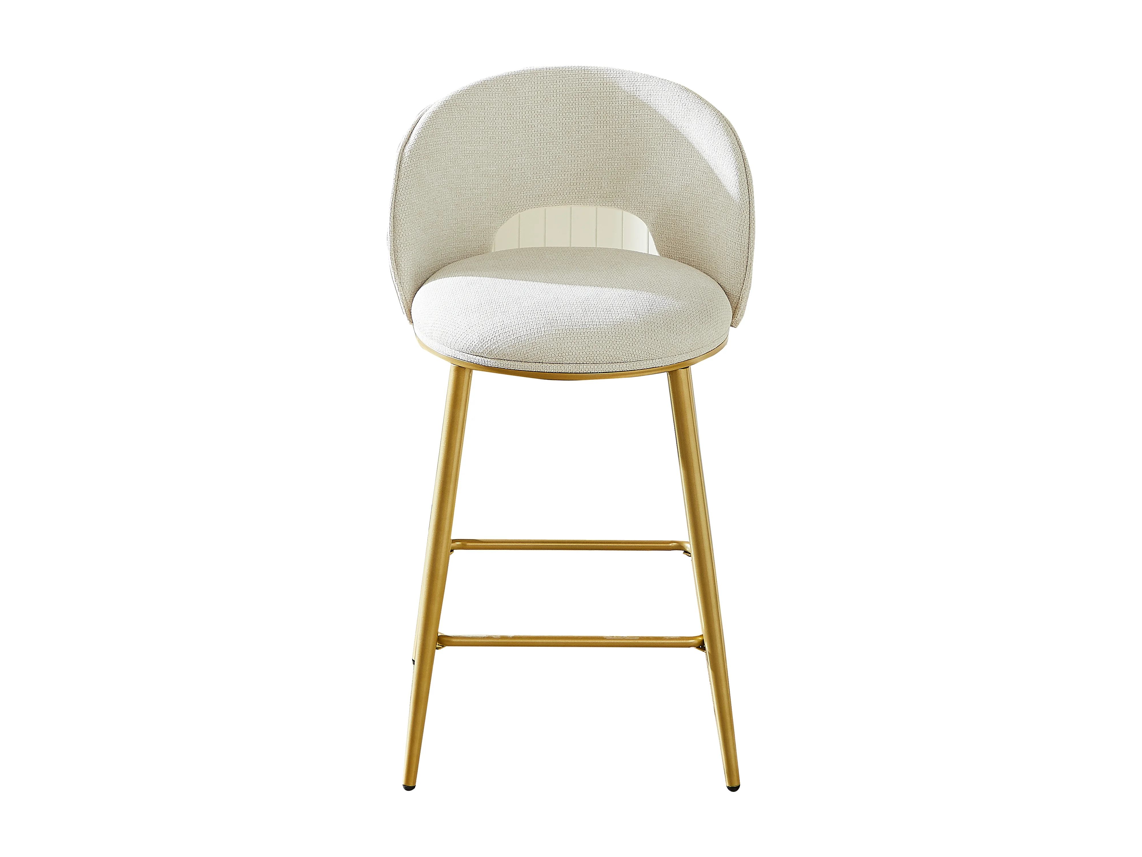 Set van 2 beige stoffen barkrukken - Opengewerkte rugleuning en goudkleurig metalen frame