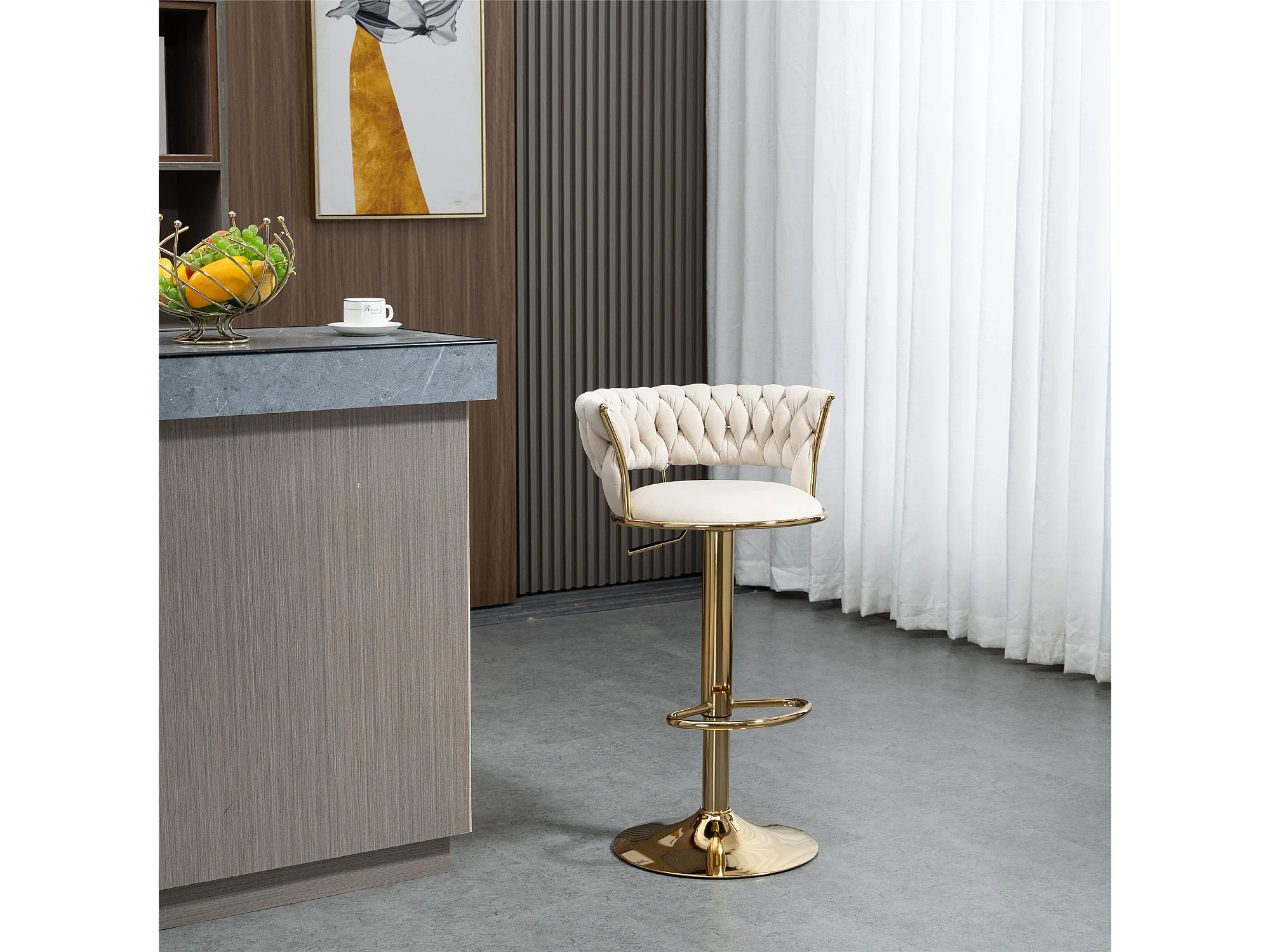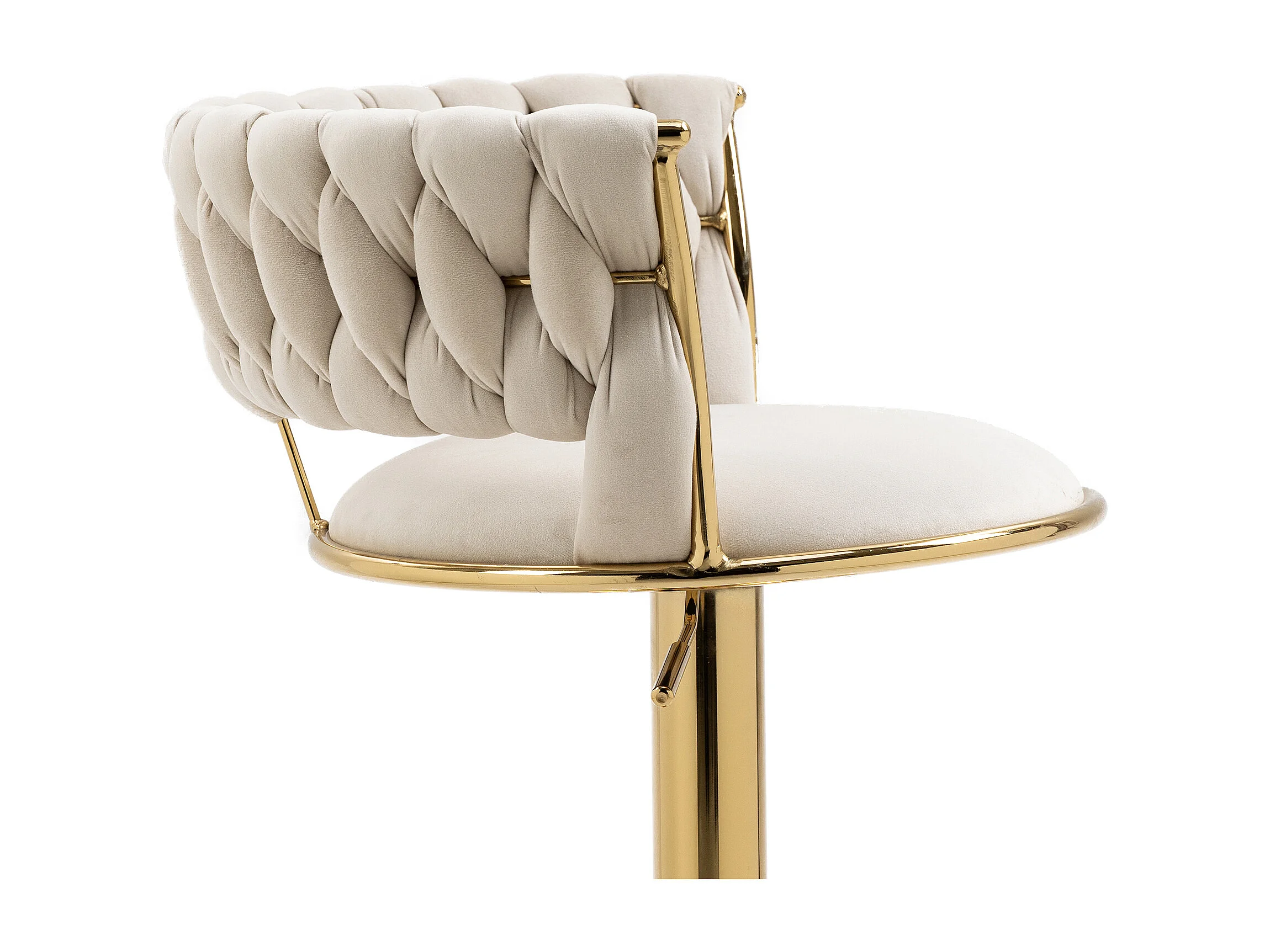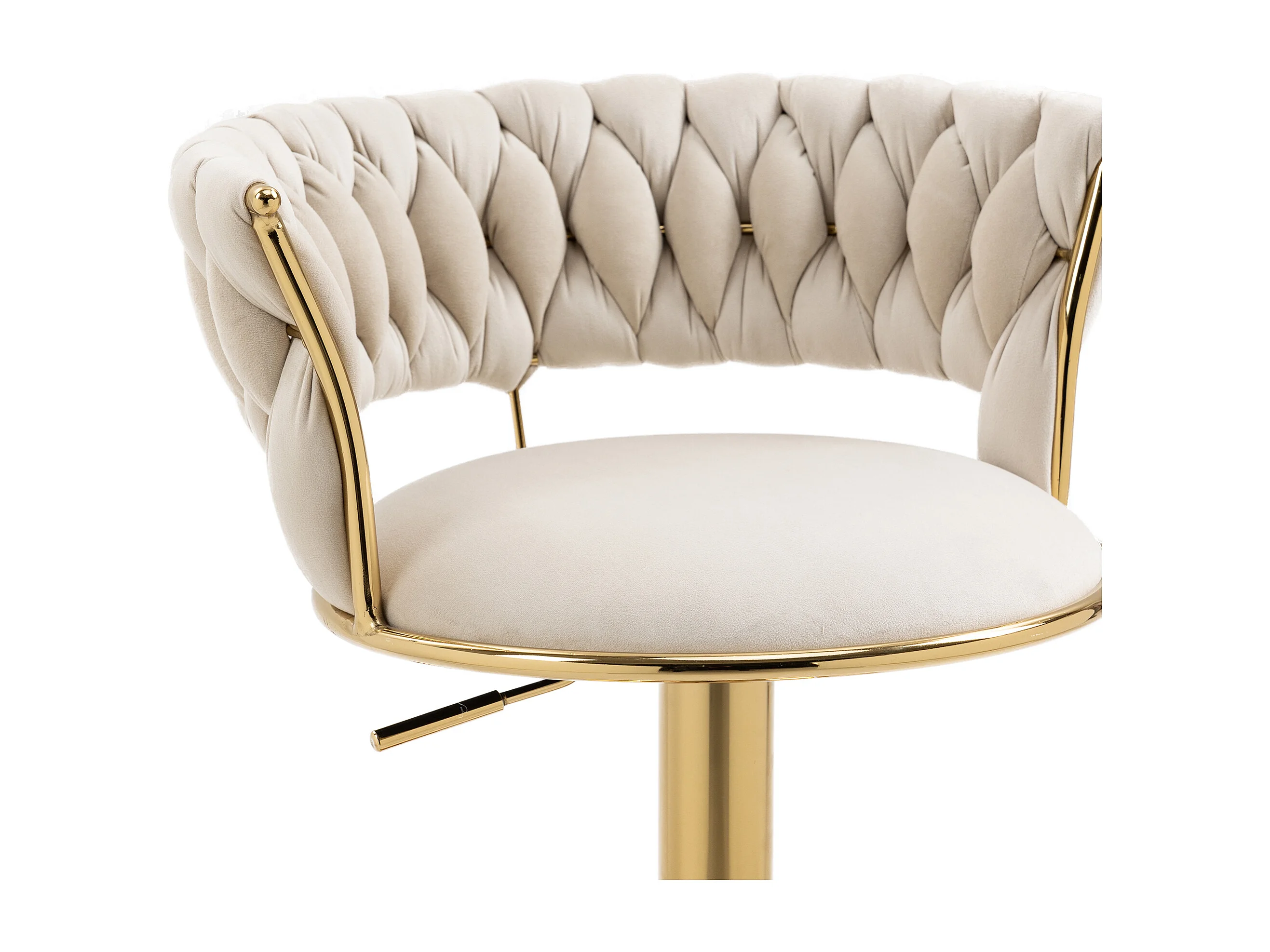 Set van 2 draaibare barkrukken in fluweel - Verstelbare hoogte - Ivoor en goud