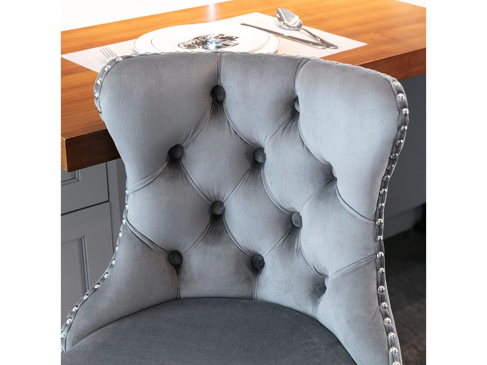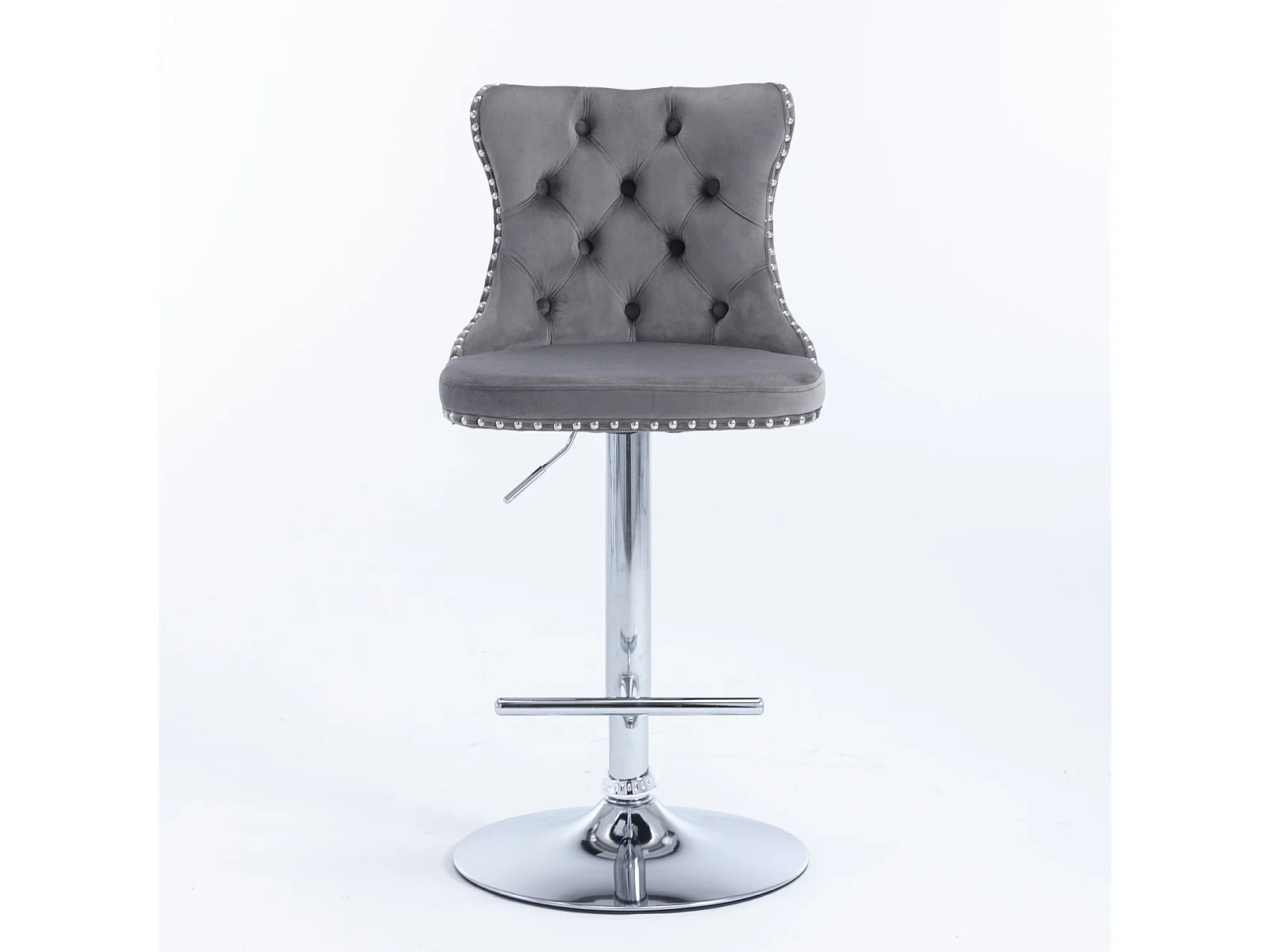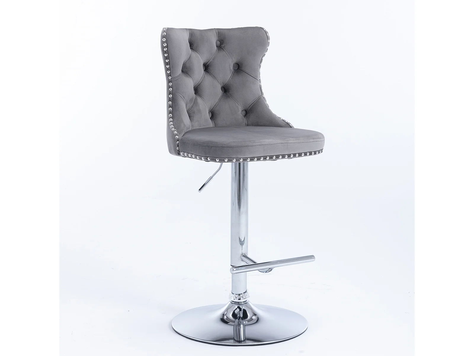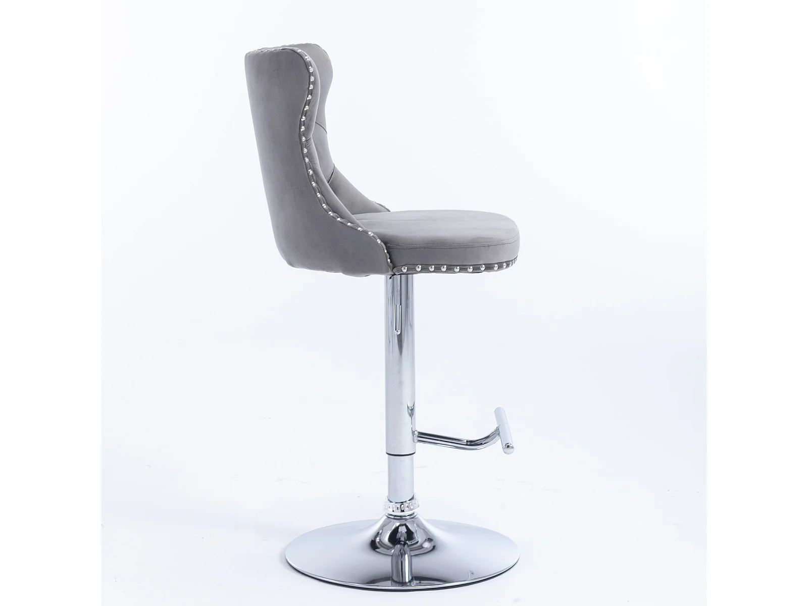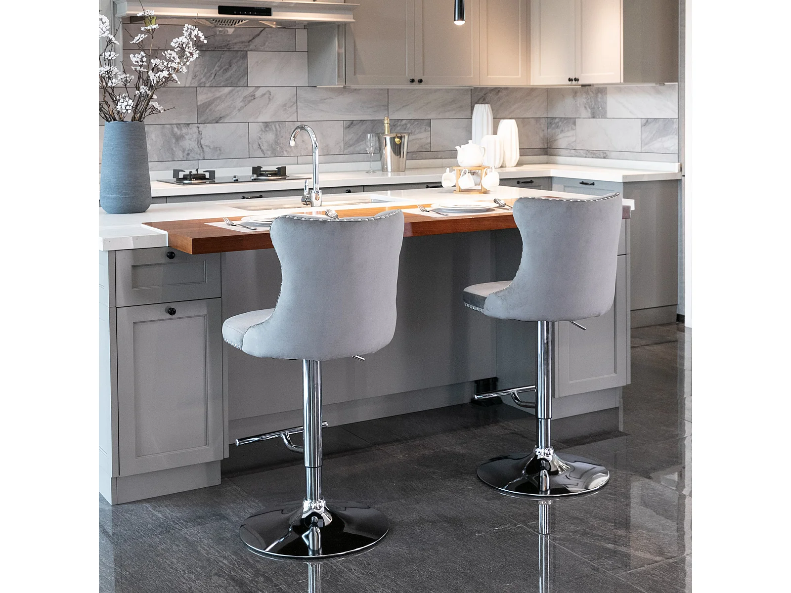 Set van 2 draaibare barkrukken in fluweel - Verstelbare hoogte van 63,5 tot 84 cm - Grijs en zilver