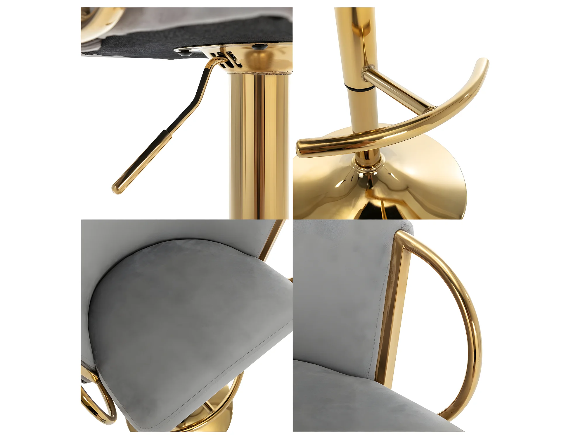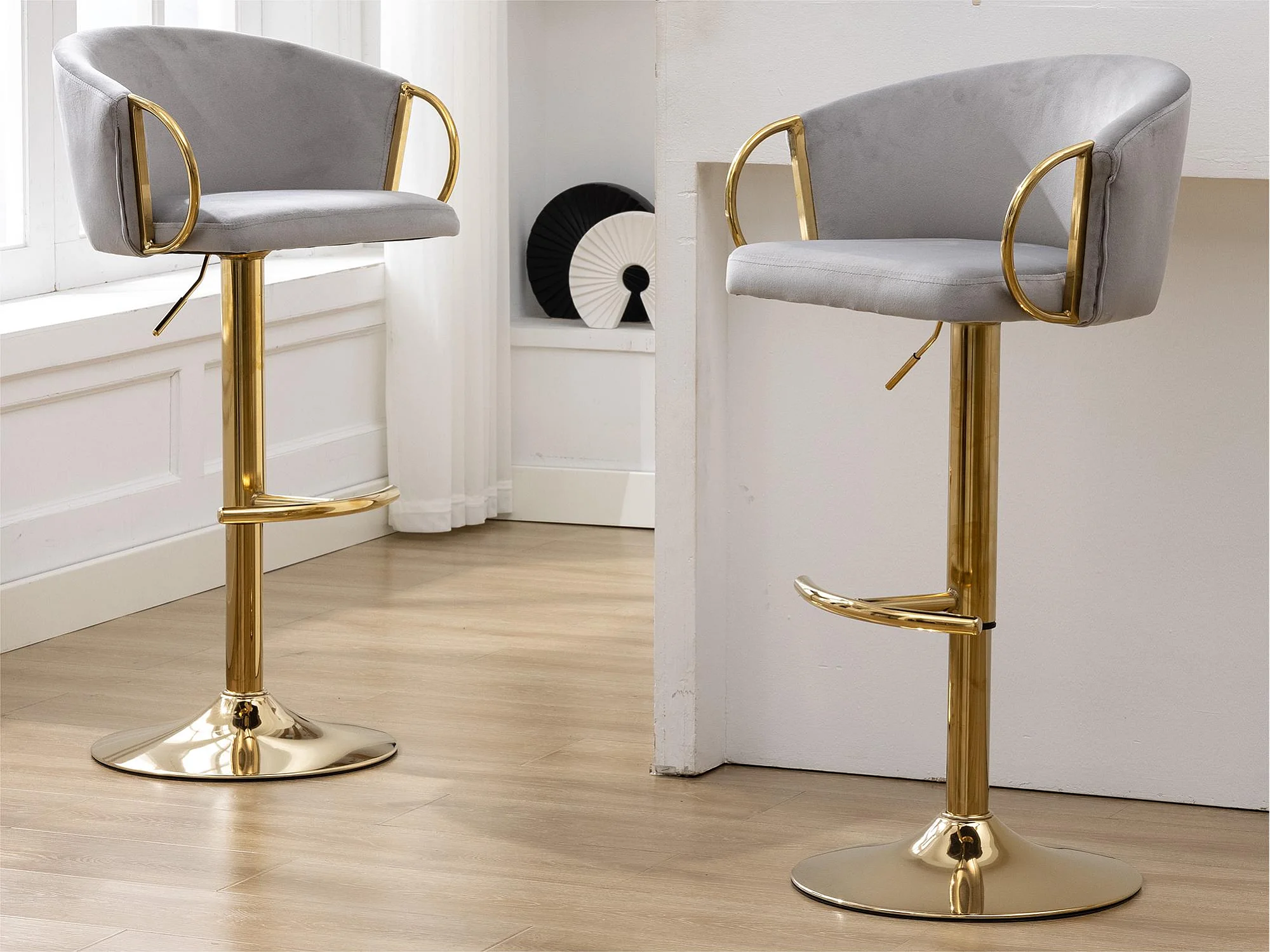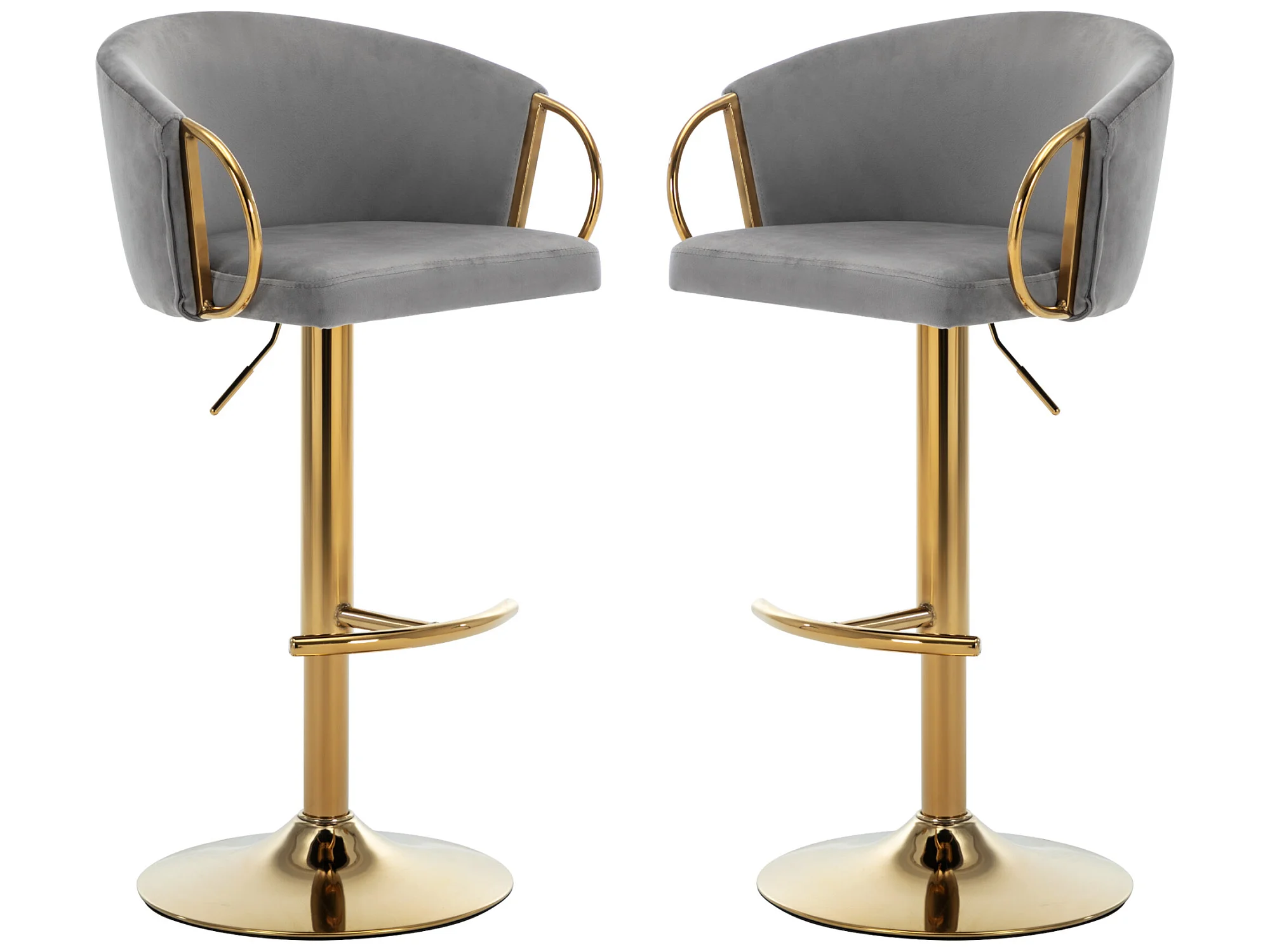 Set van 2 draaibare barkrukken met armleuning - in hoogte verstelbaar - fluwelen stof - Grijs