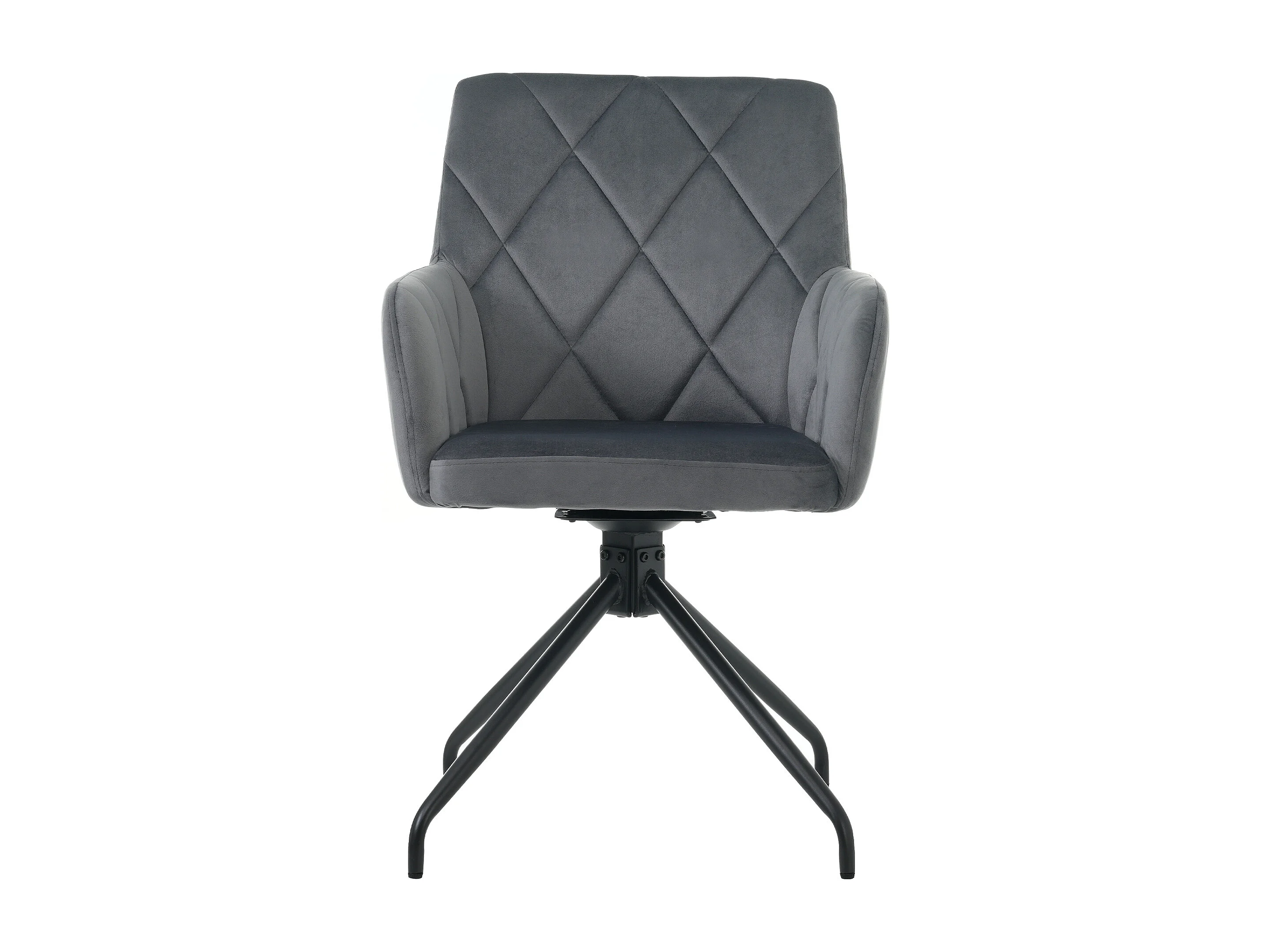 Set van 2 draaibare eetkamerstoelen, donkergrijs fluweel, stoel met armleuningen en rugleuning, metalen poten