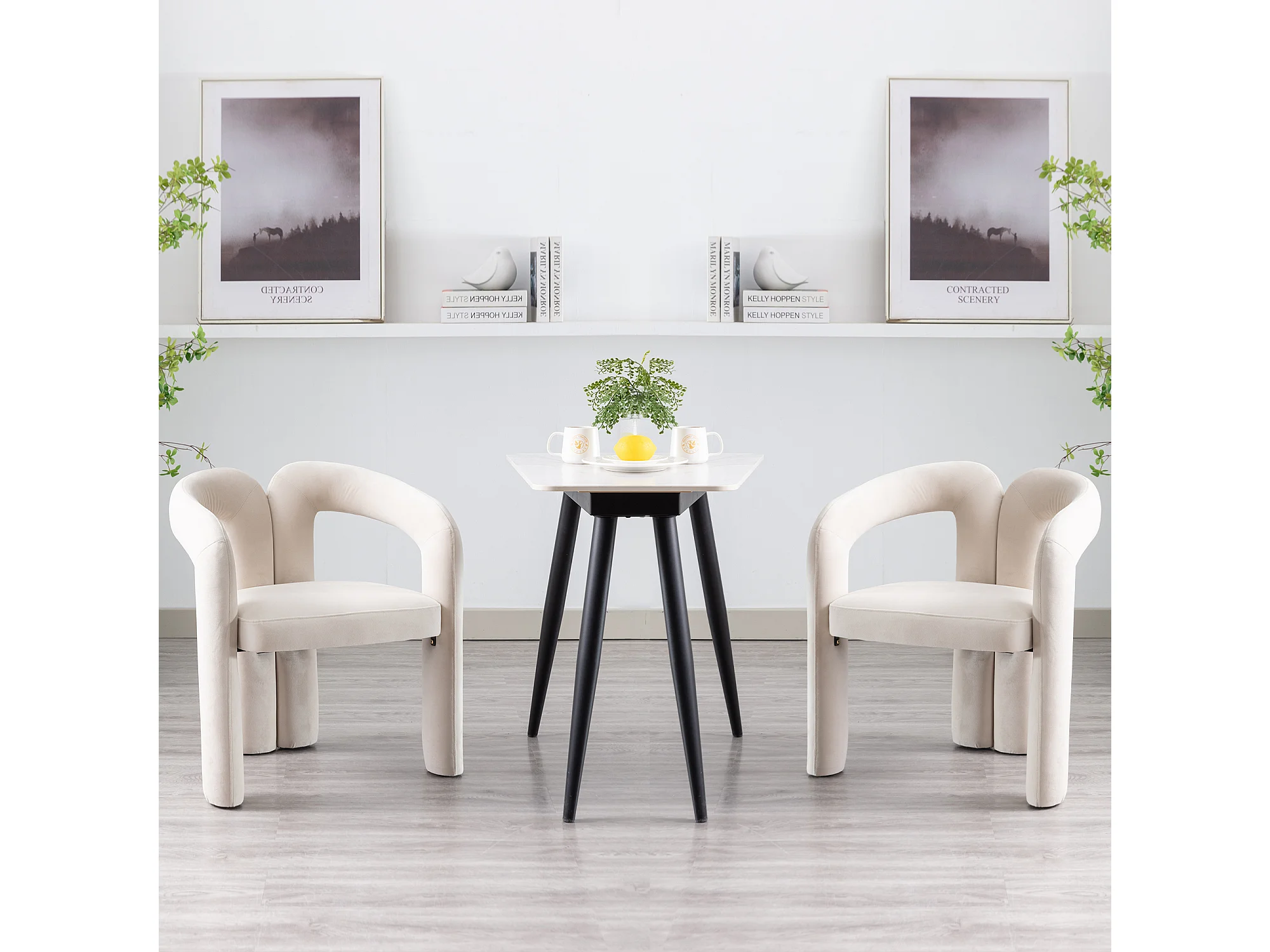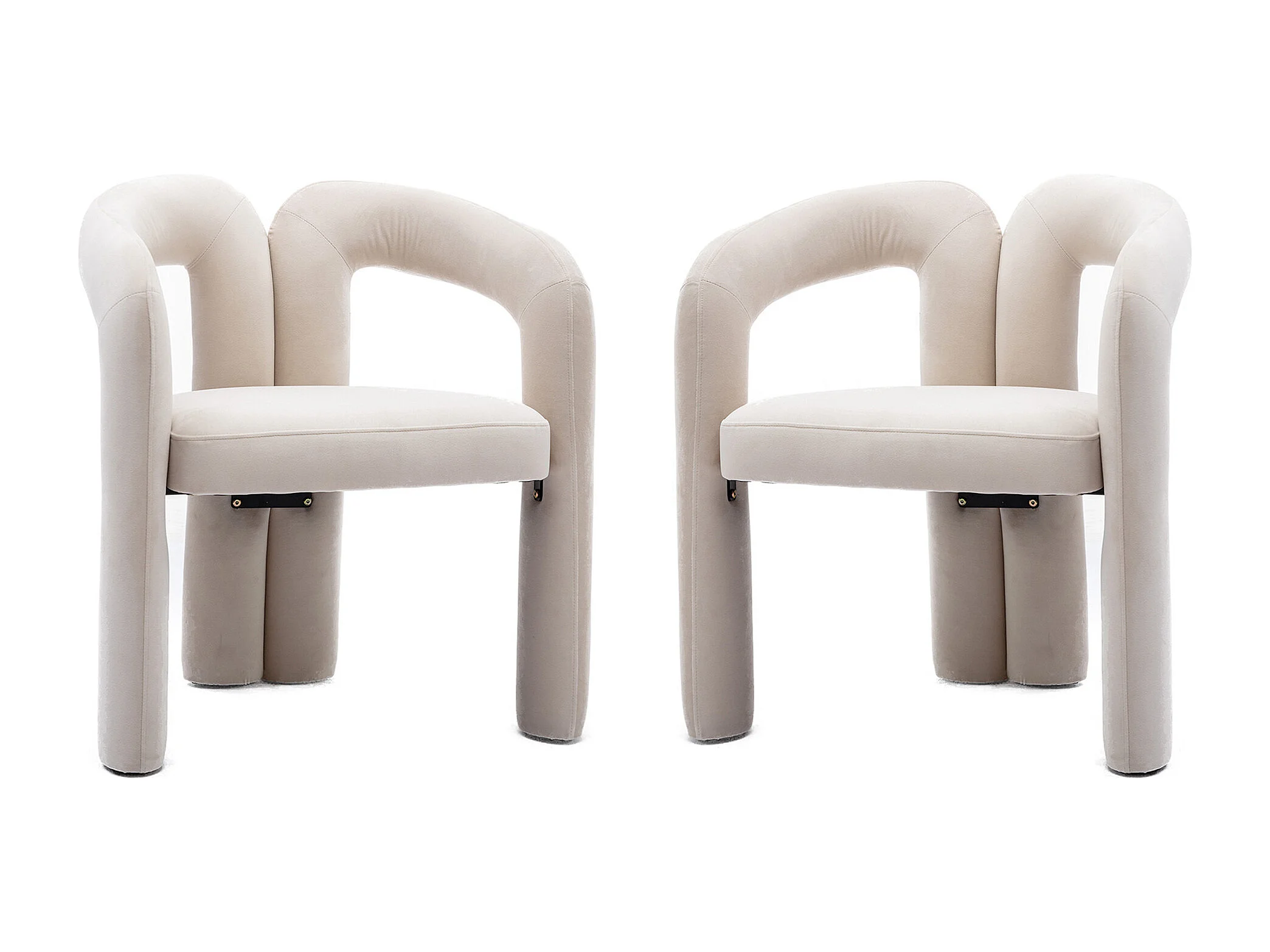 Set van 2 eetkamerstoelen - beige fluweel - met armleuningen - voor slaapkamer en woonkamer
