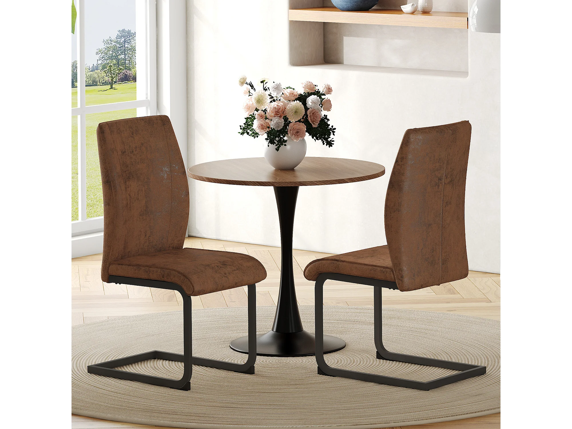 Set van 2 eetkamerstoelen, bruin imitatieleer, gewatteerde rugleuning, zwarte metalen poten