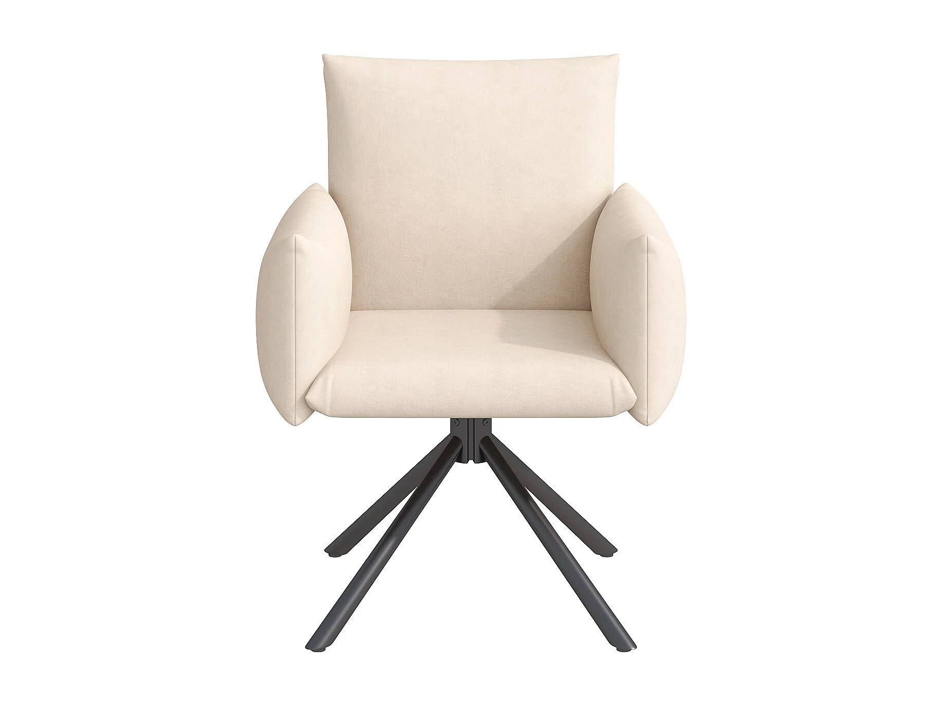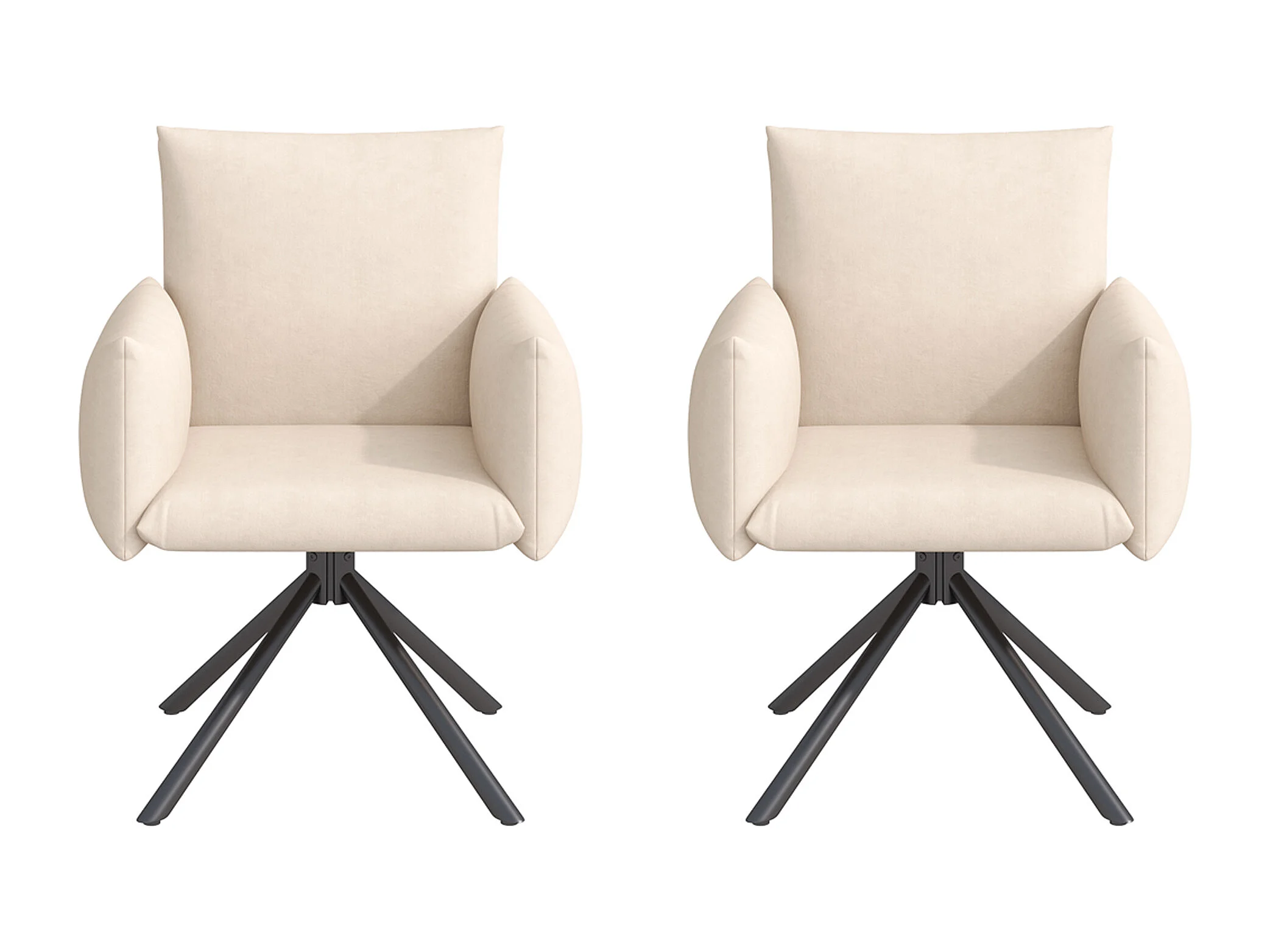 Set van 2 eetkamerstoelen - Stoel met armleuningen en 4 metalen poten - beige fluweel