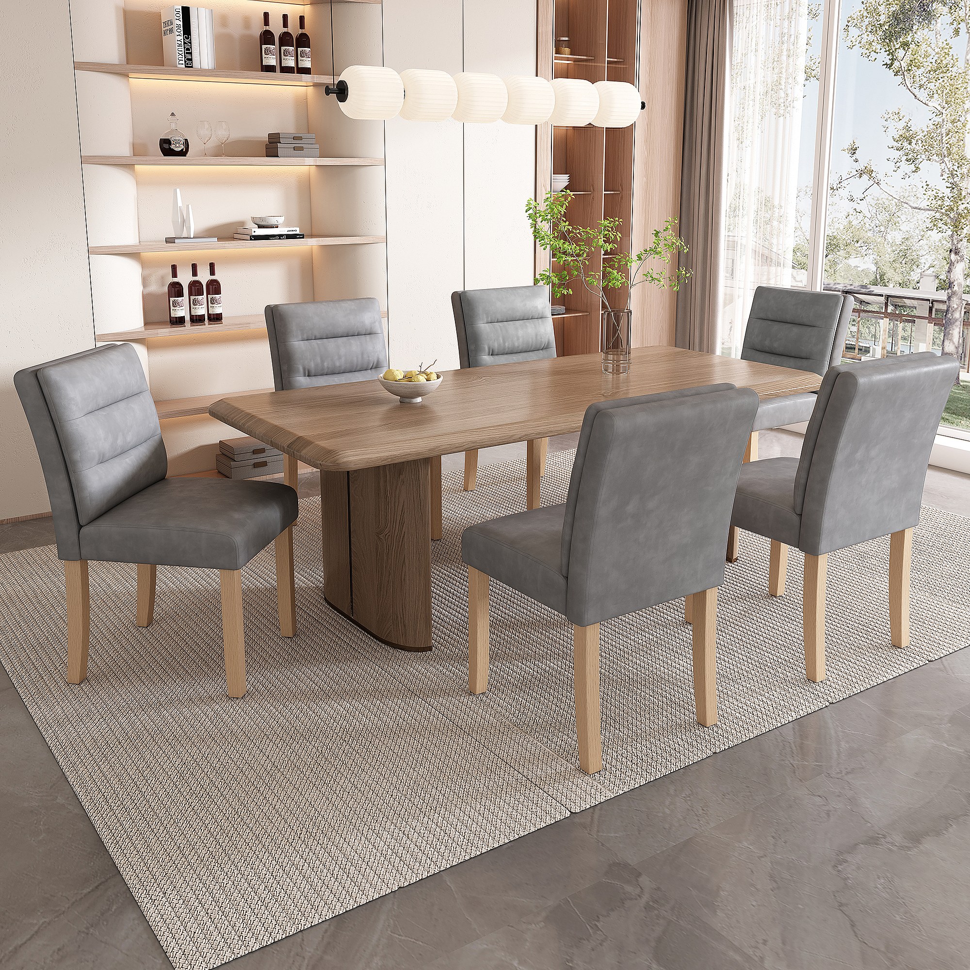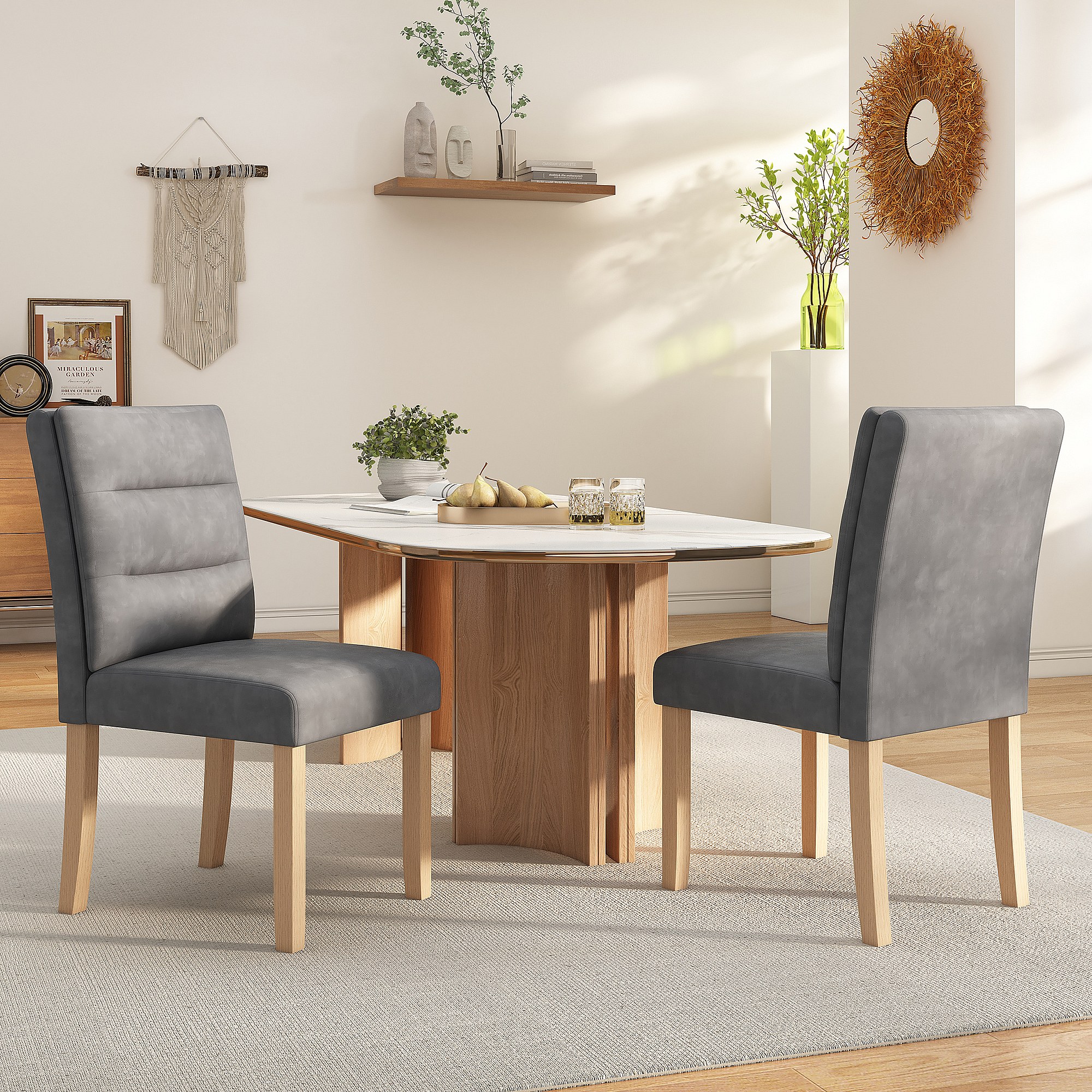 Set van 2 familie eetkamerstoelen - 88 x 59 x 44 cm - met eikenhouten rugleuningen - PU - Grijs