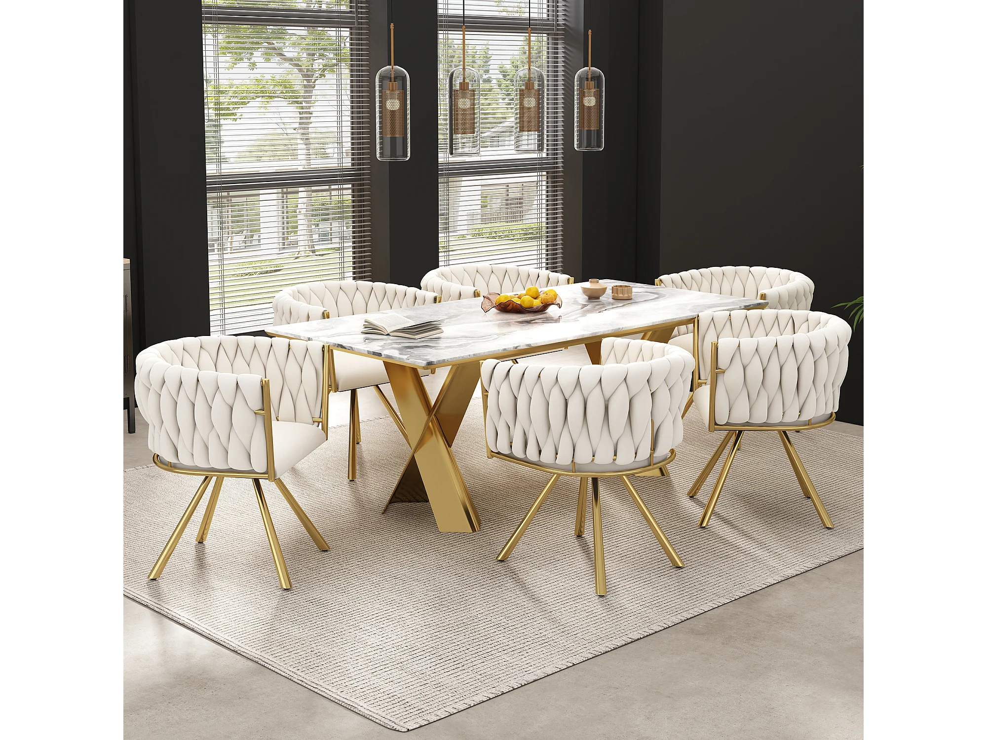 Set van 2 fluwelen eetkamerstoelen, 360° draaibaar op metalen onderstel – beige en goud